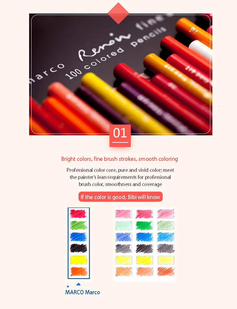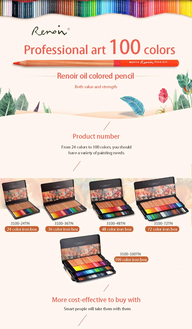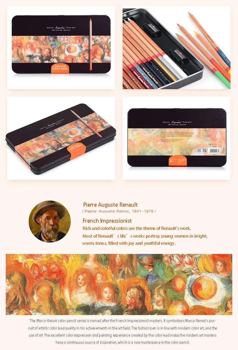 Профессиональный маслянистый цвет карандашей, 24364872100, Марко Ренуар, цветной карандаш для рисования скетчей комплект, принадлежности для живописи для школы 3100