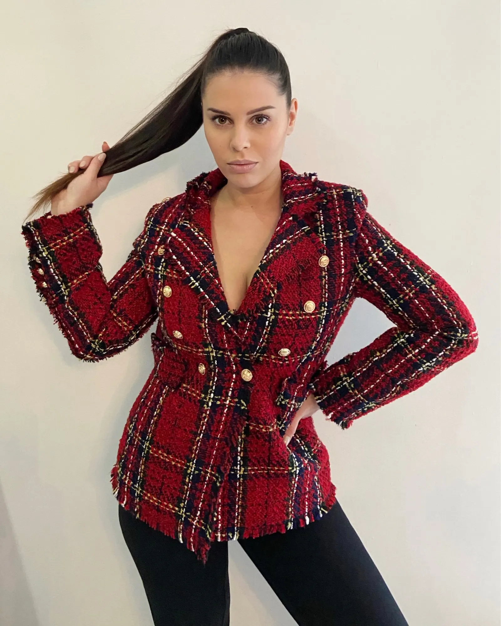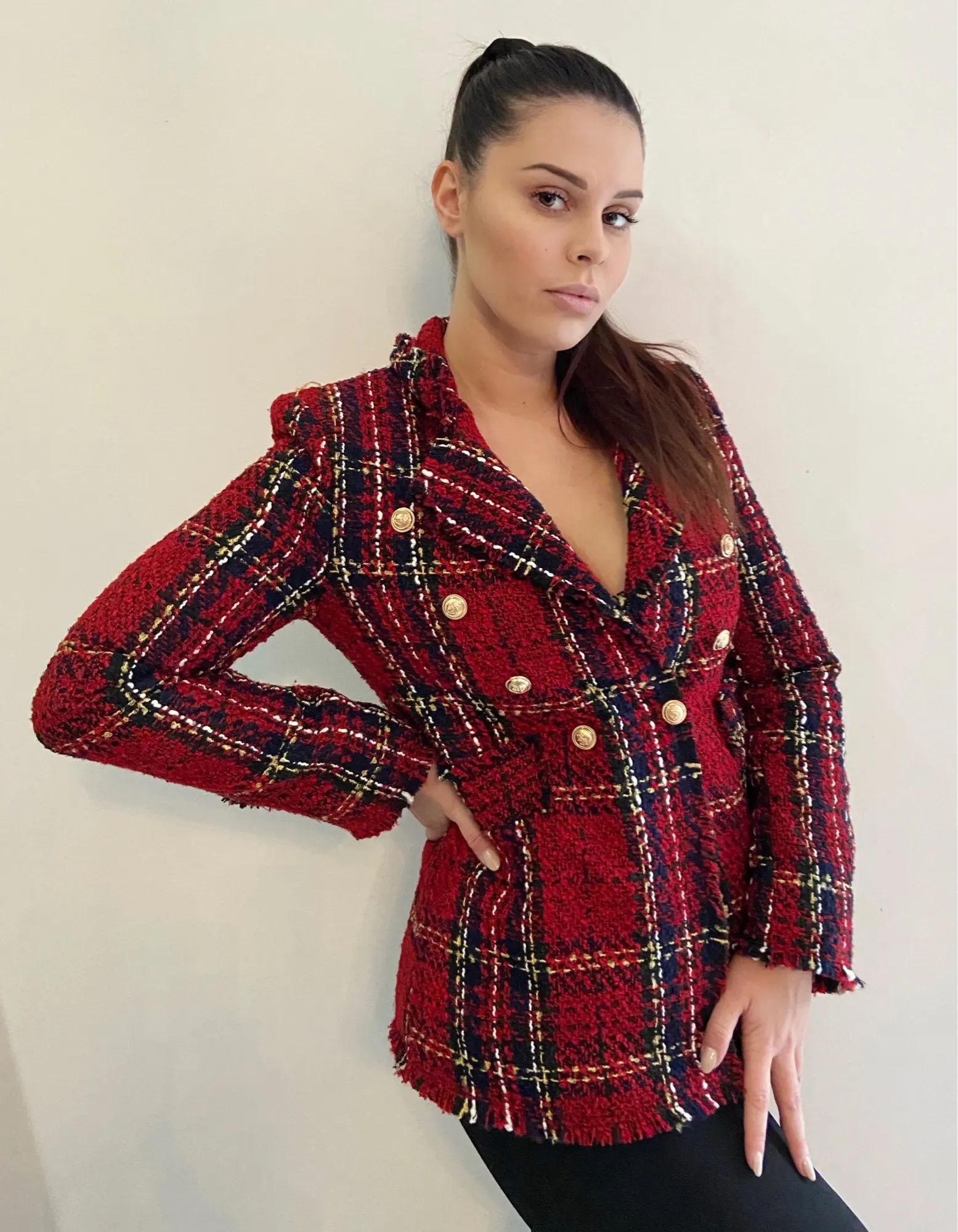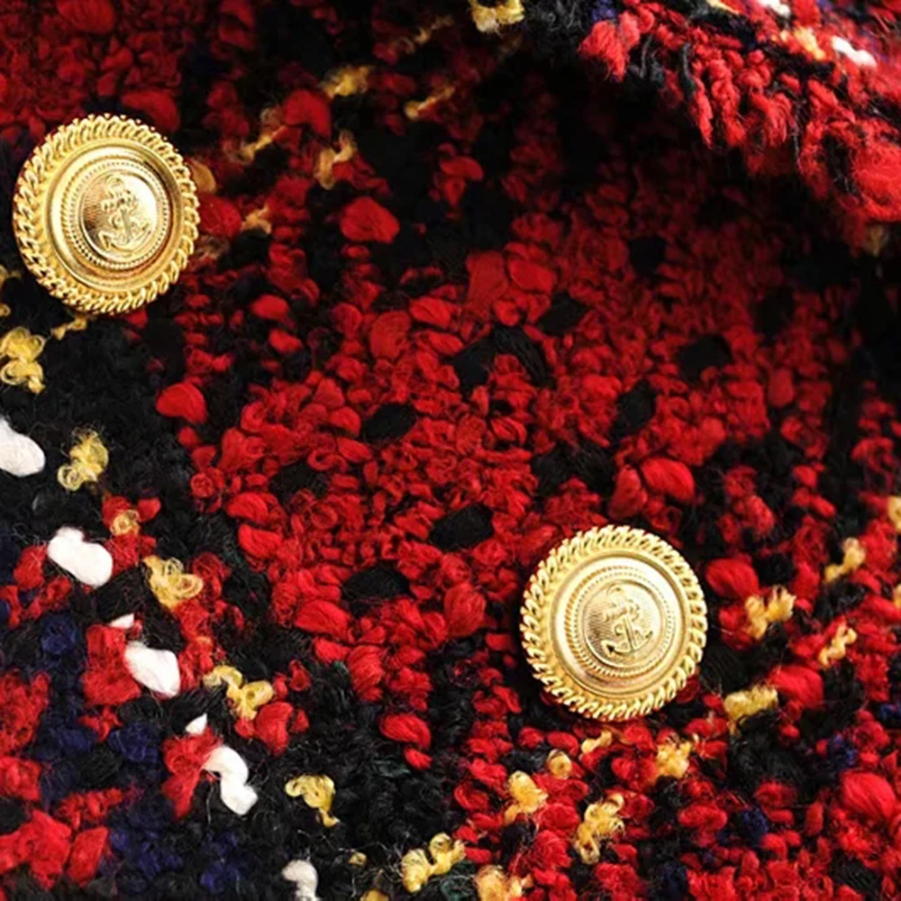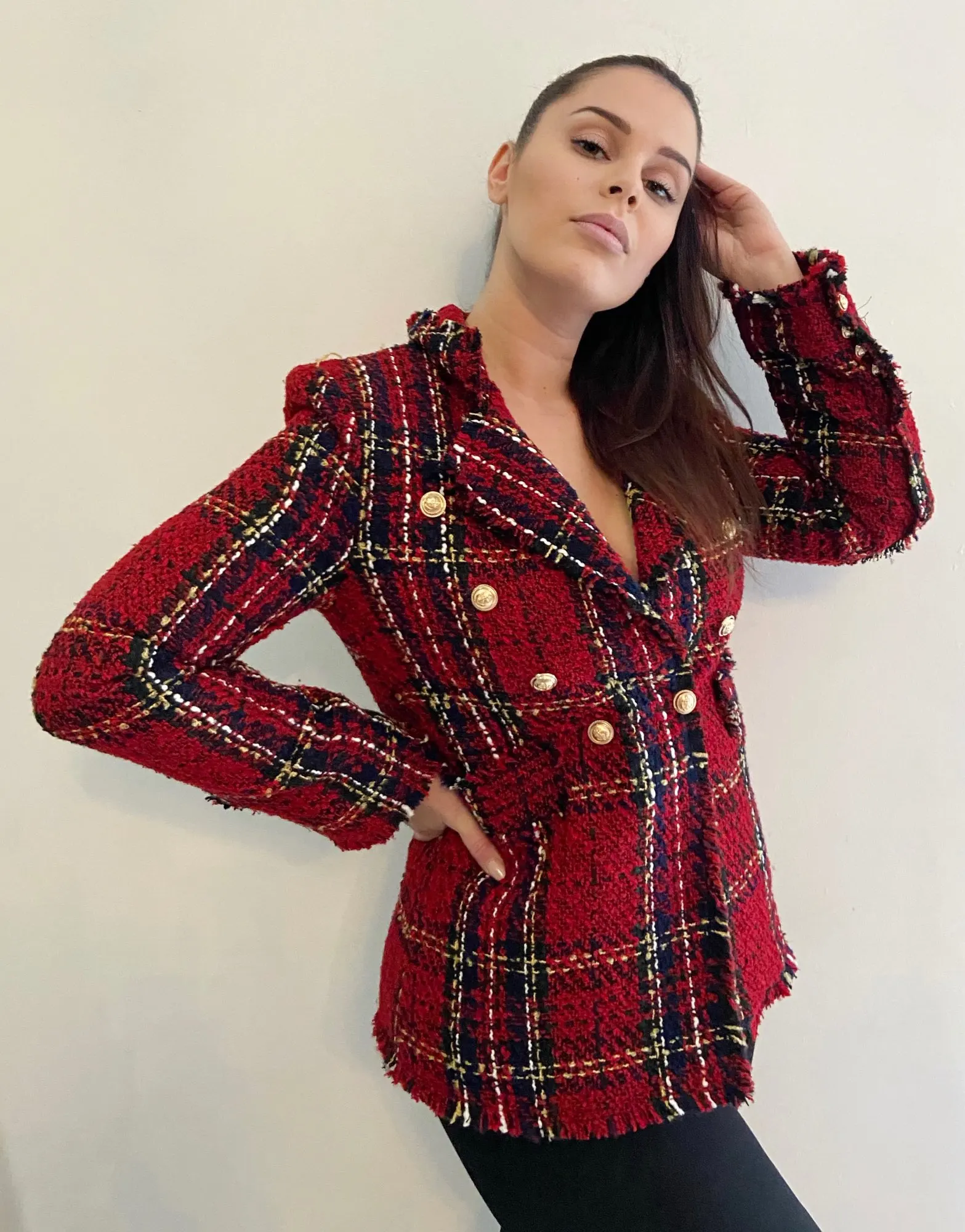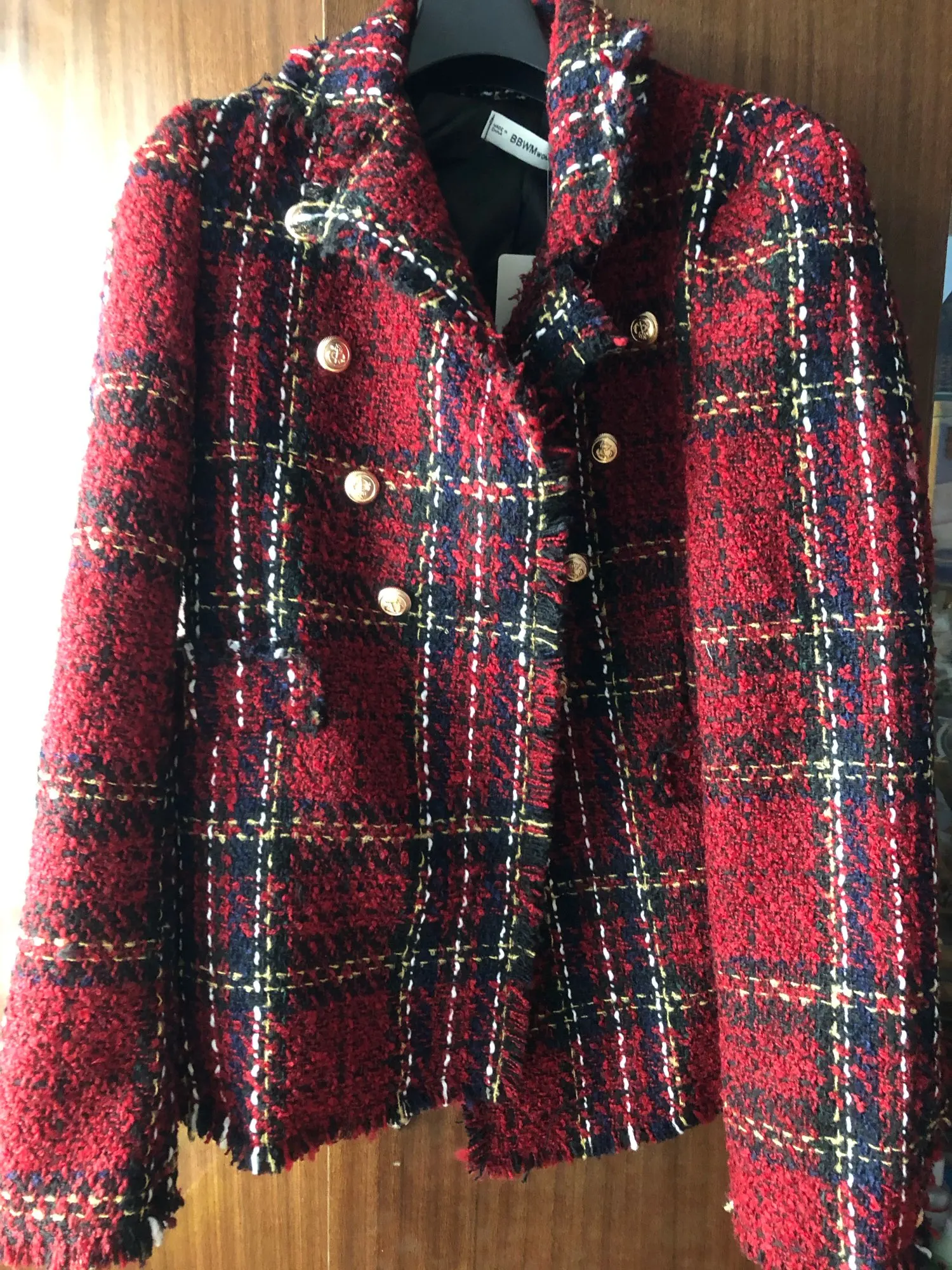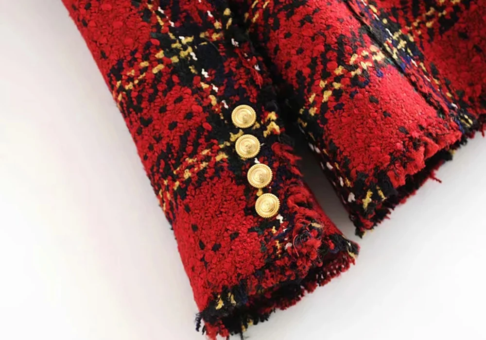 Пиджак женский твидовый, красный, в клетку, винтажный, 2021