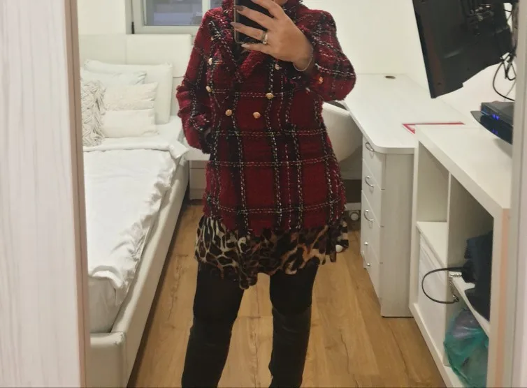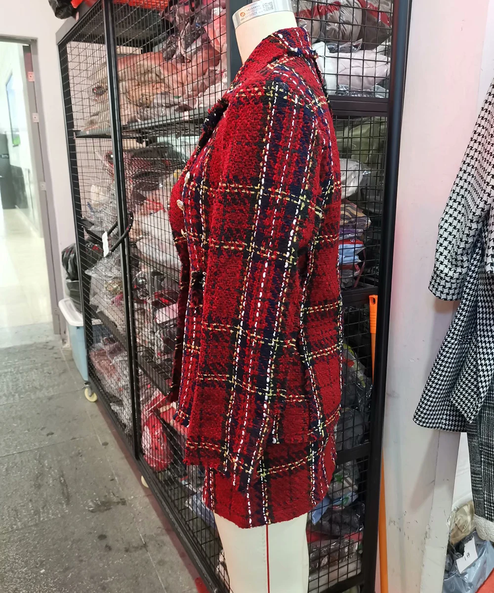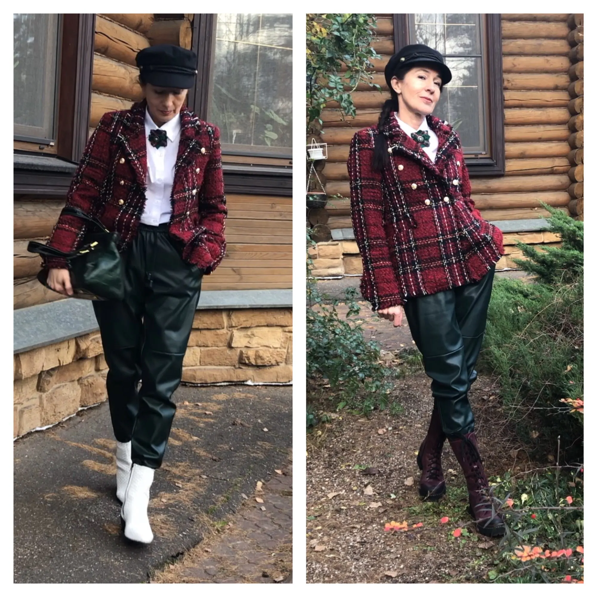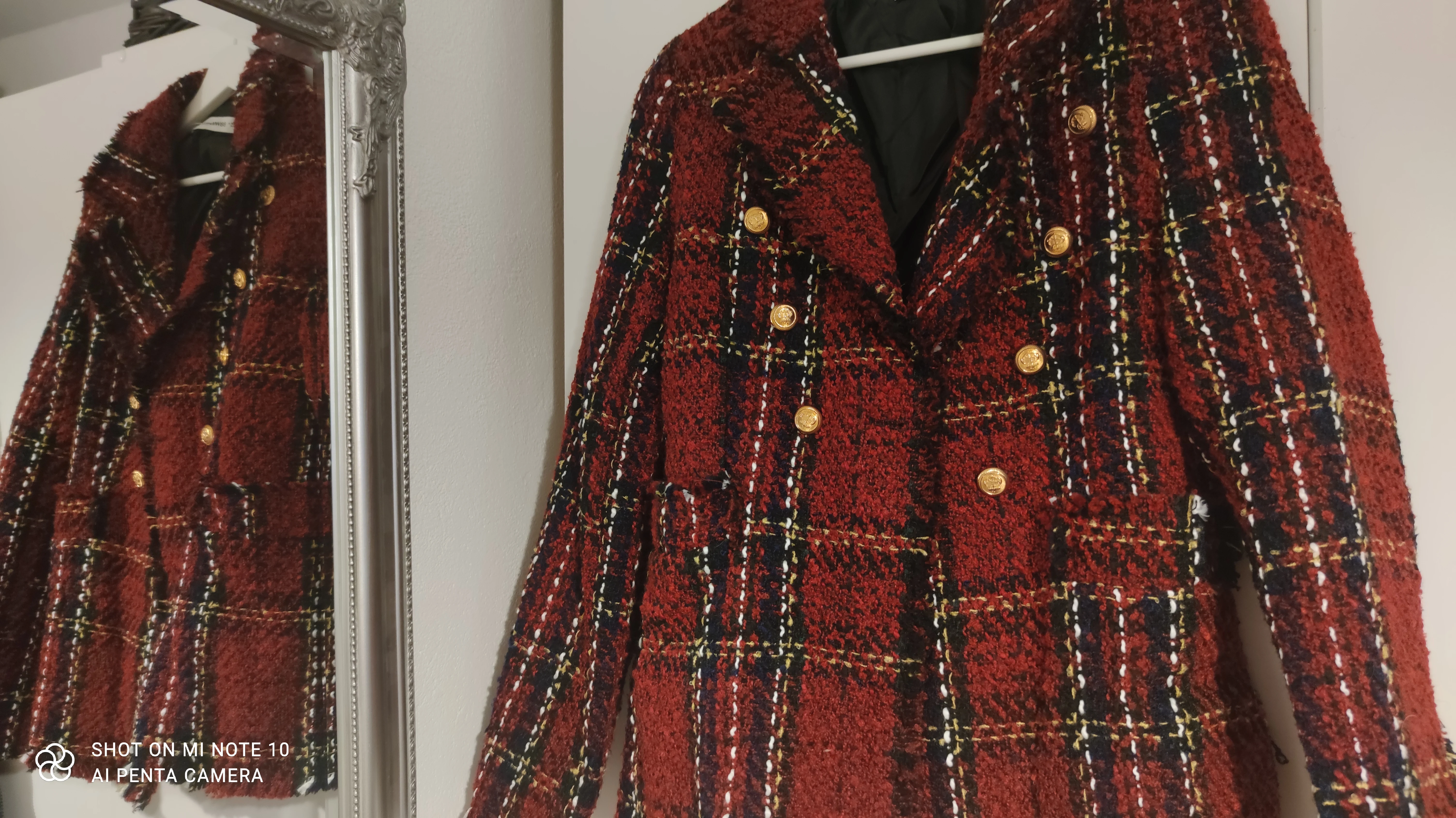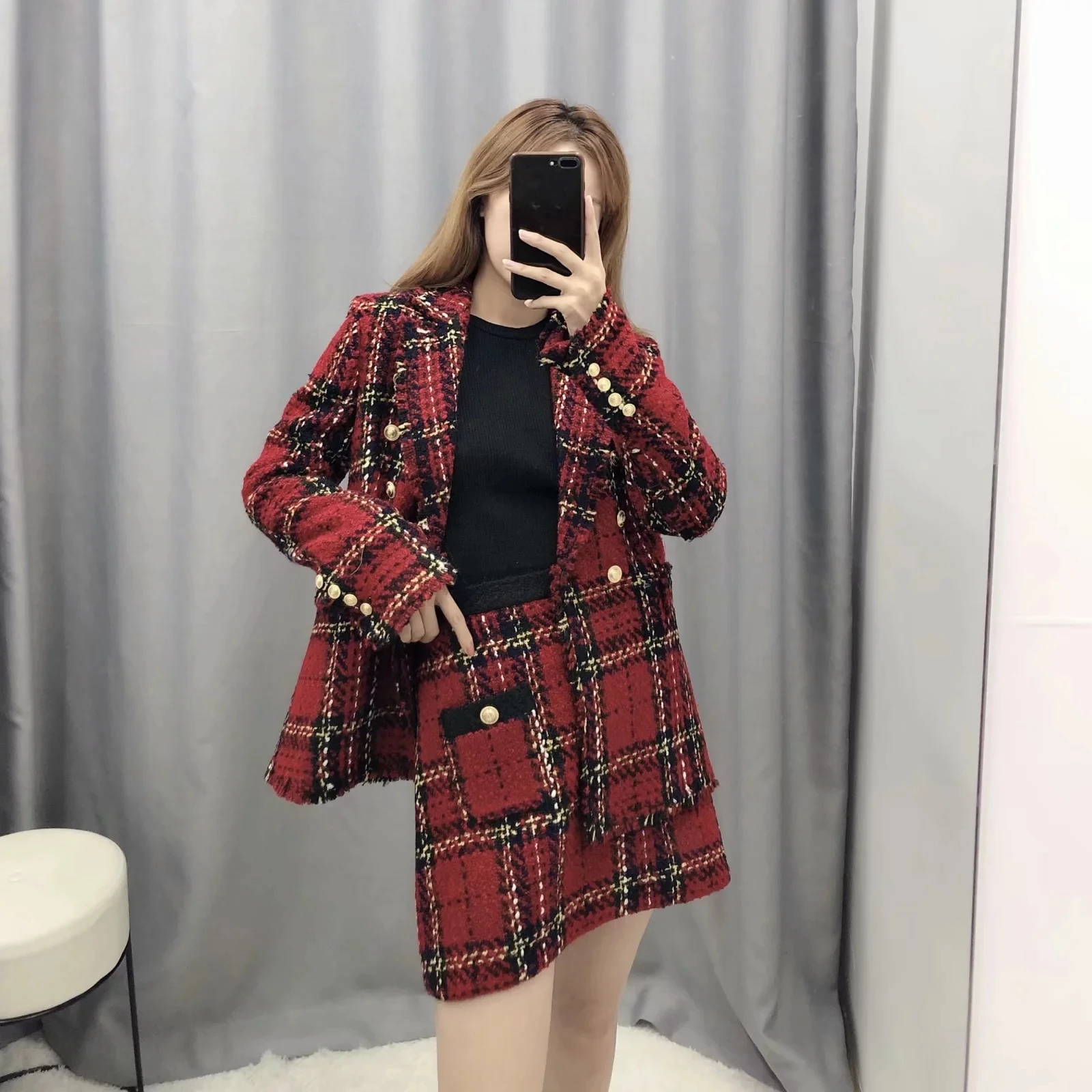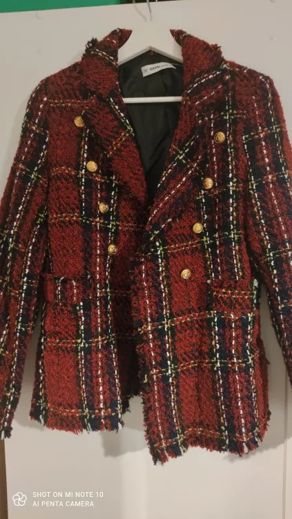 Пиджак женский твидовый, красный, в клетку, винтажный, 2021