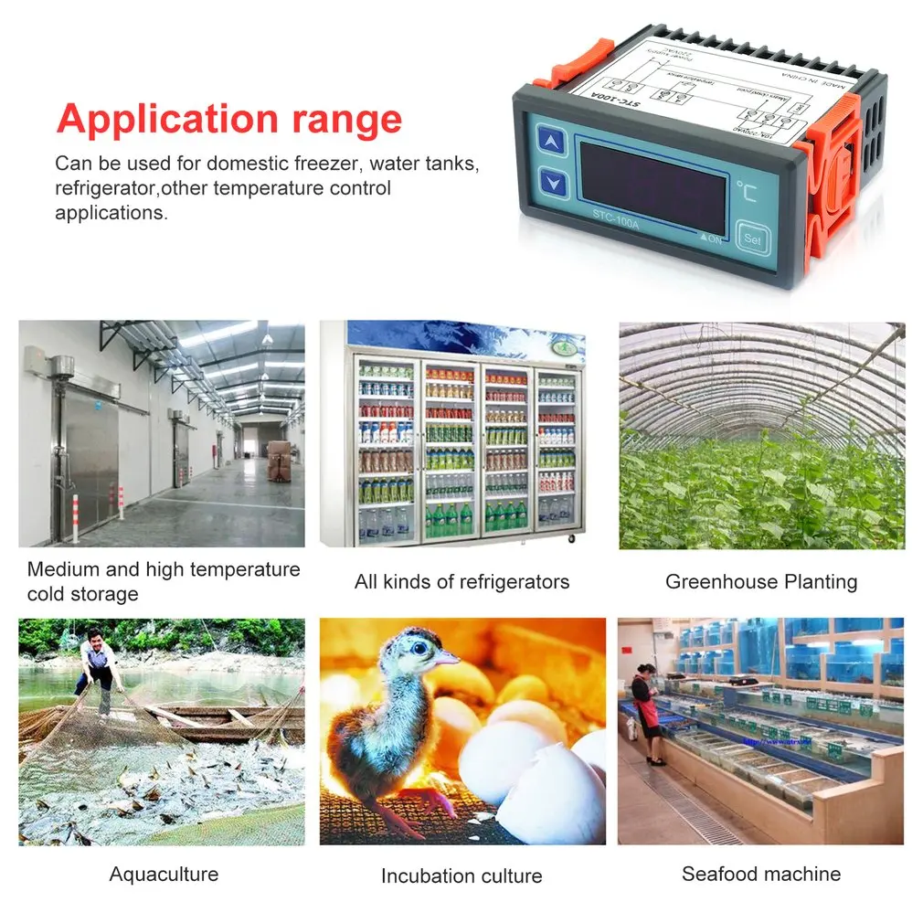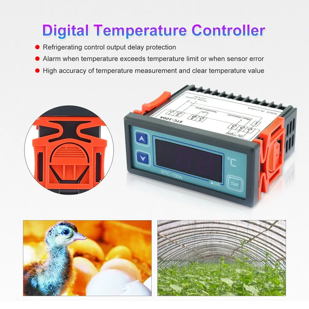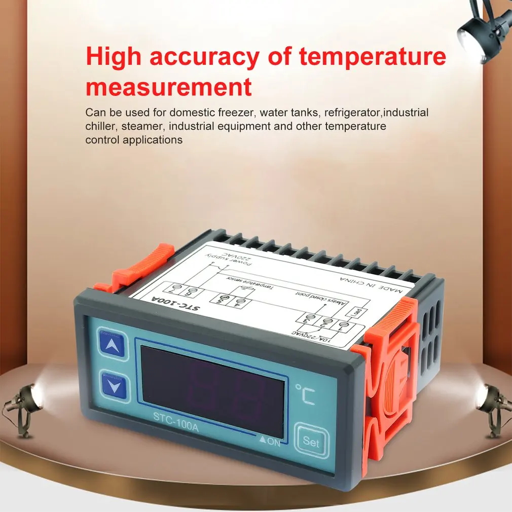 Цифровой регулятор температуры, термостат для холодильника, терморегулятор, датчик термопары, STC-100A