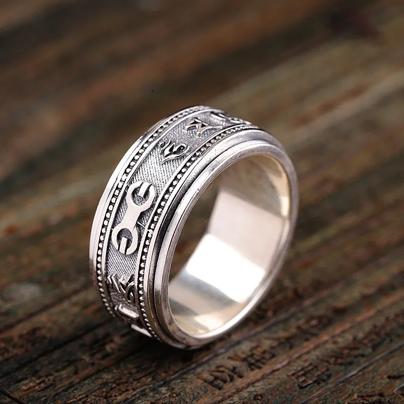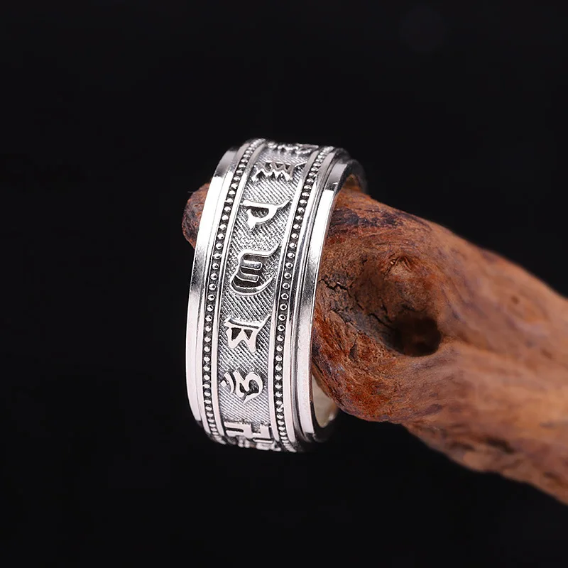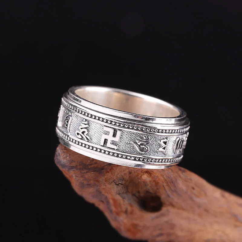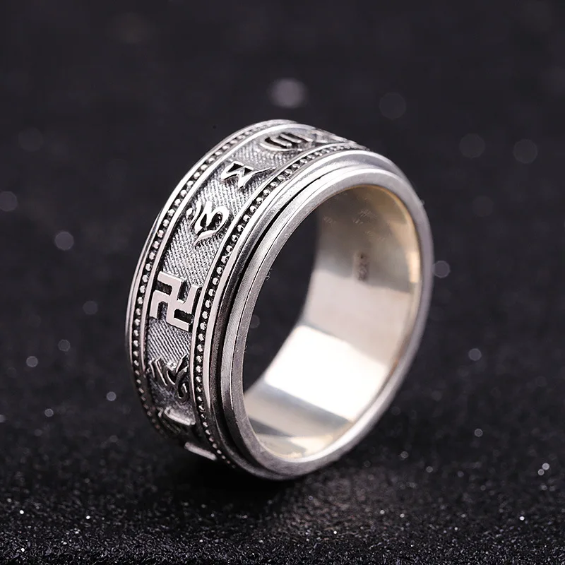 Кольца унисекс, тибетские, спиннинговые, из серебра 925 пробы