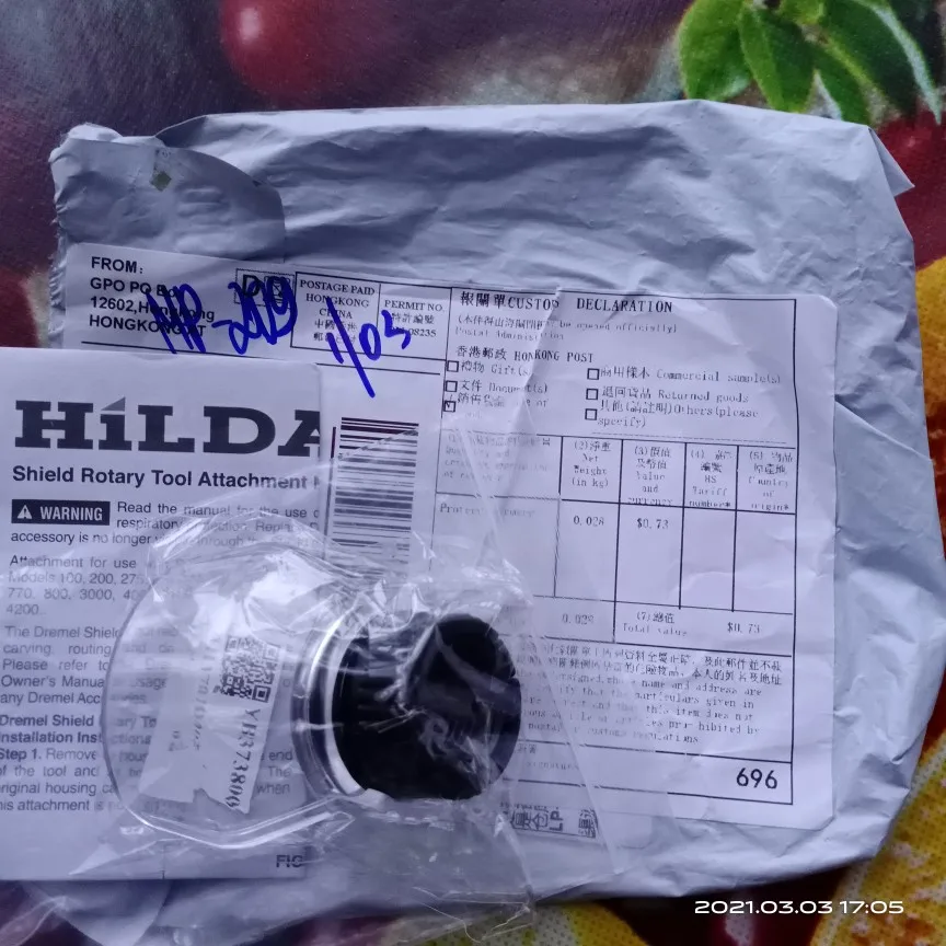 Защитную крышку для мини-дрели получил. Всё хорошо. Спасибо.