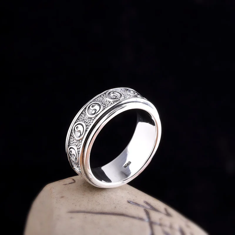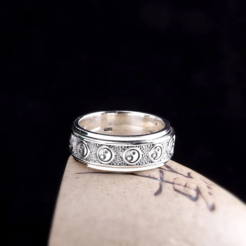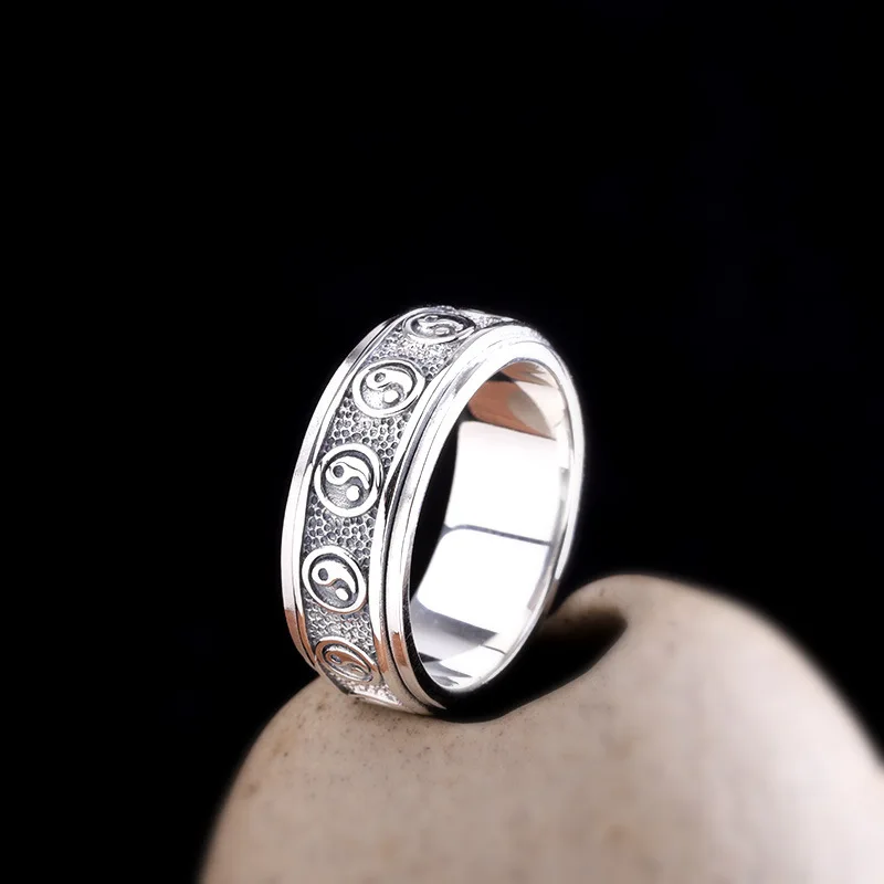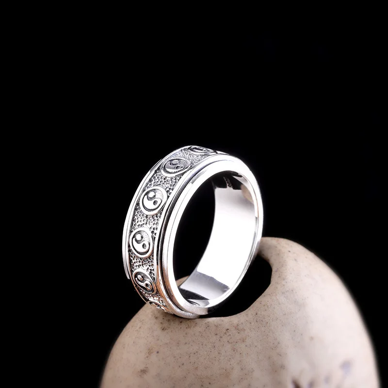 Кольца унисекс, тибетские, спиннинговые, из серебра 925 пробы