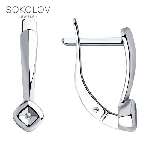 Серьги SOKOLOV из серебра с бриллиантамиКлассические серьги из серебра с бриллиантами станут универсальным украшением на каждый день. Простой и элегантный дизайн, деликатное сияние камня, надёжный английский замок – три составляющие базового украшения, которое окажется уместным в любой ситуации. Стилизуйте серьги с повседневными вещами, когда хочется расставить блестящих акцентов, или дополняйте ими вечерние наряды, чтобы получить завершённый, но не перегруженный образ.