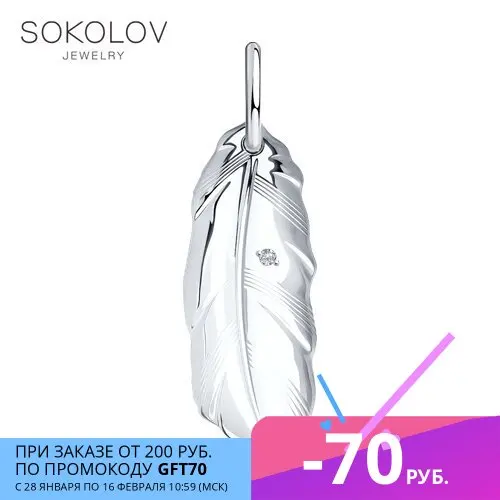 Подвеска Пёрышко SOKOLOV из серебра, Серебро, 925, Оригинальная продукция