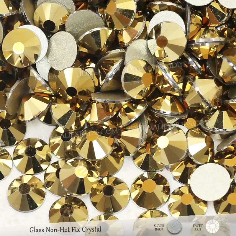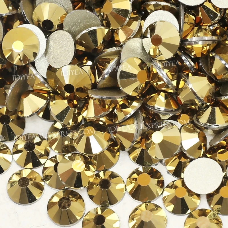 Стеклянные Блестящие Стразы для ногтей AAA, золотистые, без исправлений, все для 3d ногтей, маникюрный дизайн, стразы, блестки