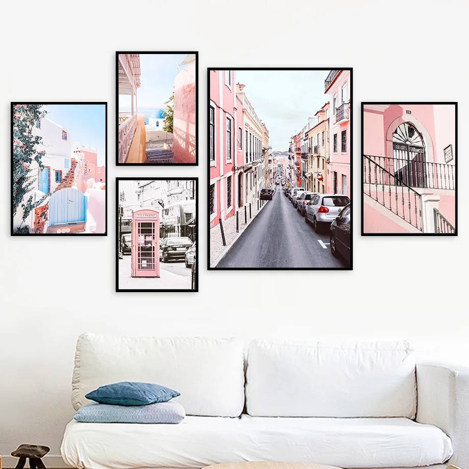 Настенные постеры в скандинавском стиле с изображением розовых лепе...