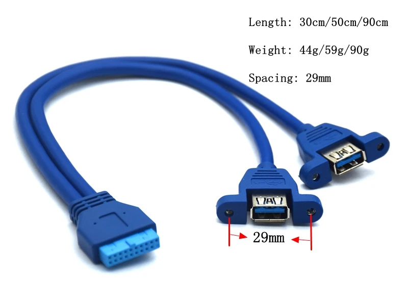 USB 3,0 двухпортовый гнездовой винт типа крепления к материнской плате 20pin кабель заголовка 20 см