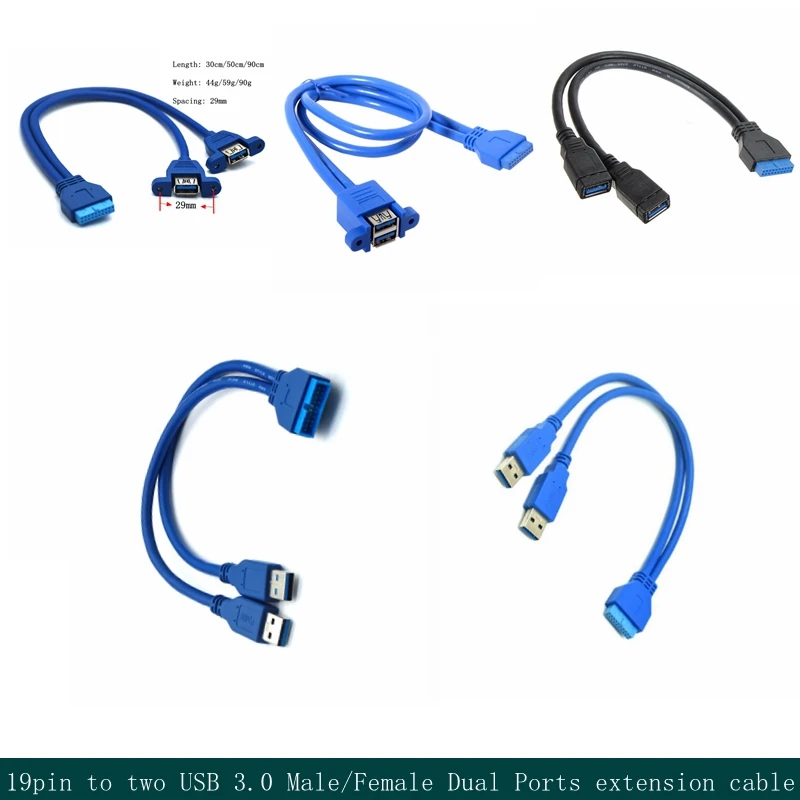 Материнская плата USB 3,0 19pin 20pin к USB 3,0 Женский двойной порт Женский удлинитель шнур 30 см 50 см 80 см с винтовым креплением