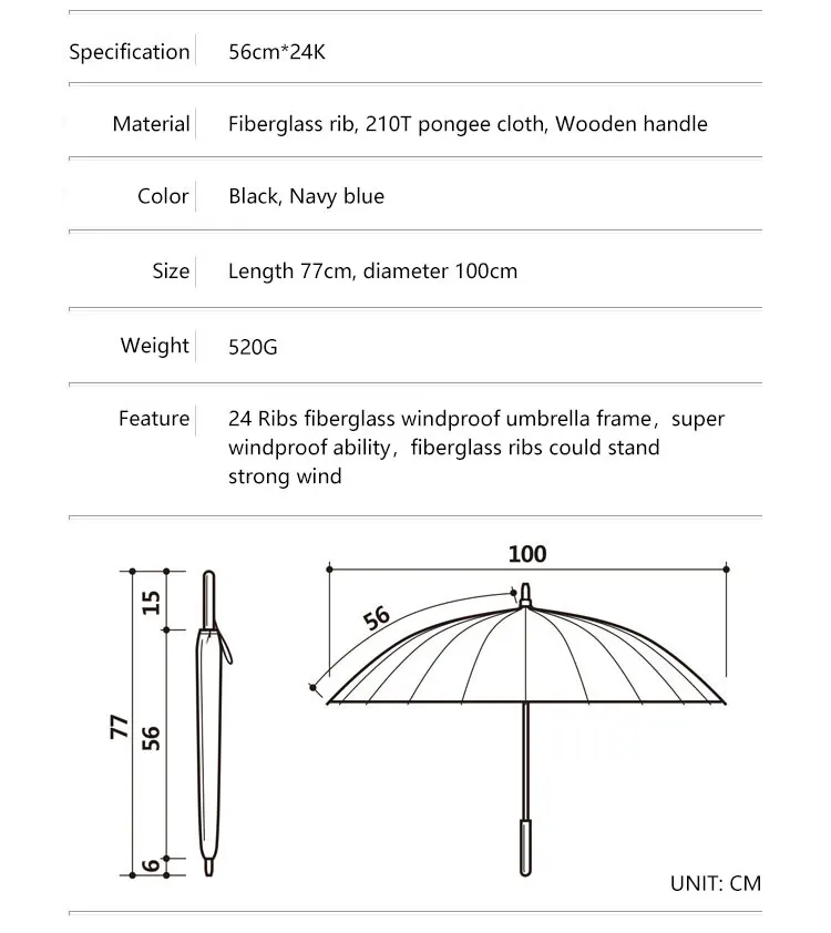 Зонт изготовлен из качественного каркаса из стекловолокна с 24 ребрами, он защитит весь корпус, чтобы вы могли использовать его в Жиле.