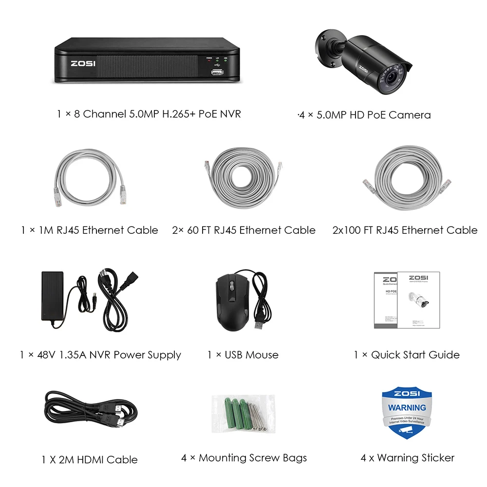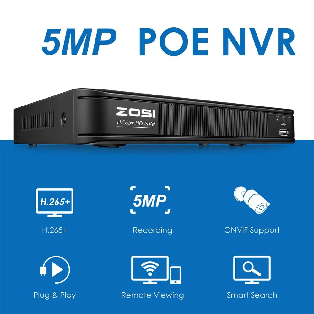 Система видеонаблюдения ZOSI, уличная водонепроницаемая IP-камера с ночным видением, 5 МП, 8 каналов, POE, H.265, NVR, комплект HDD