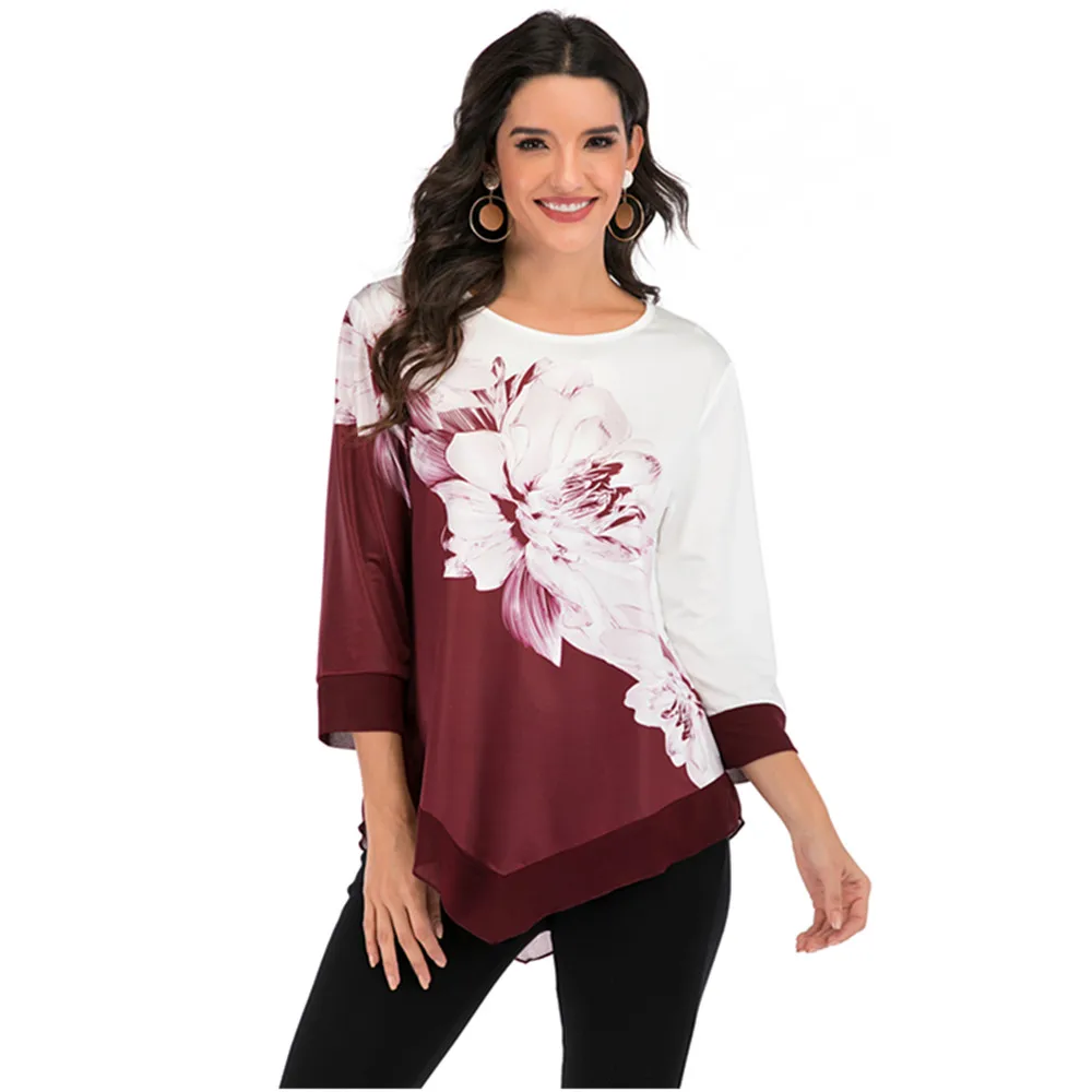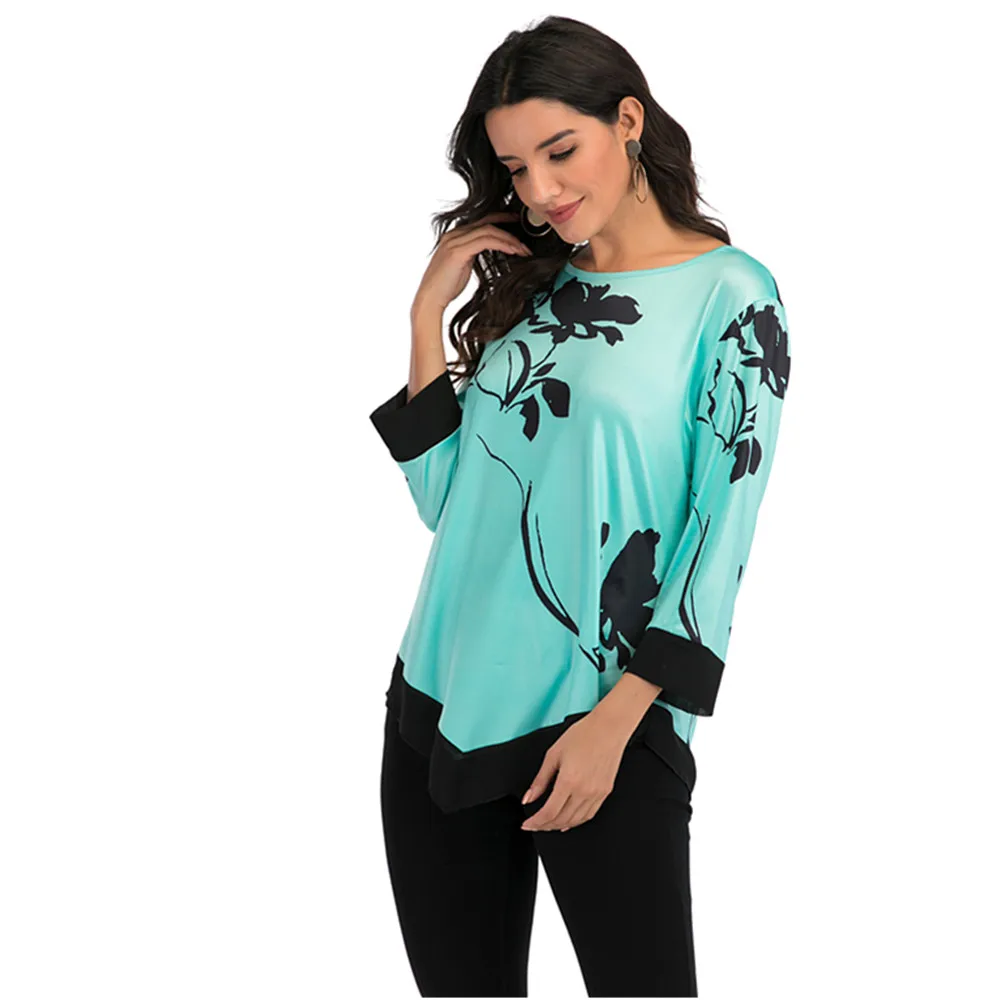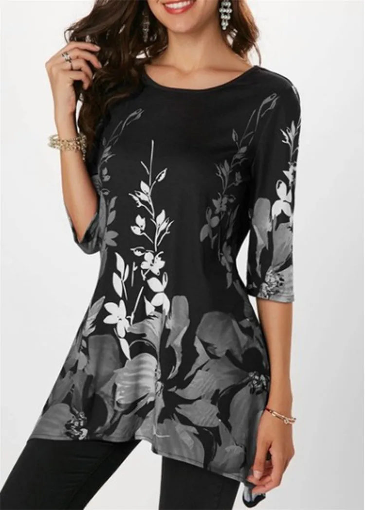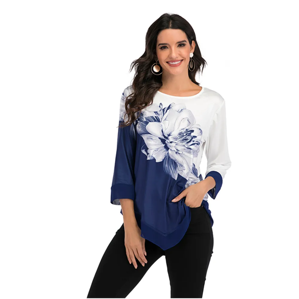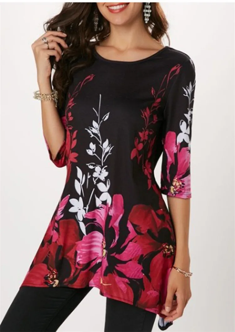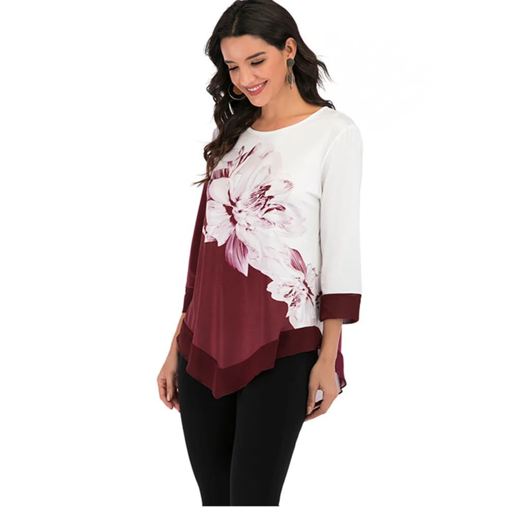 Женская футболка с круглым вырезом, длинным рукавом и цветочным принтом