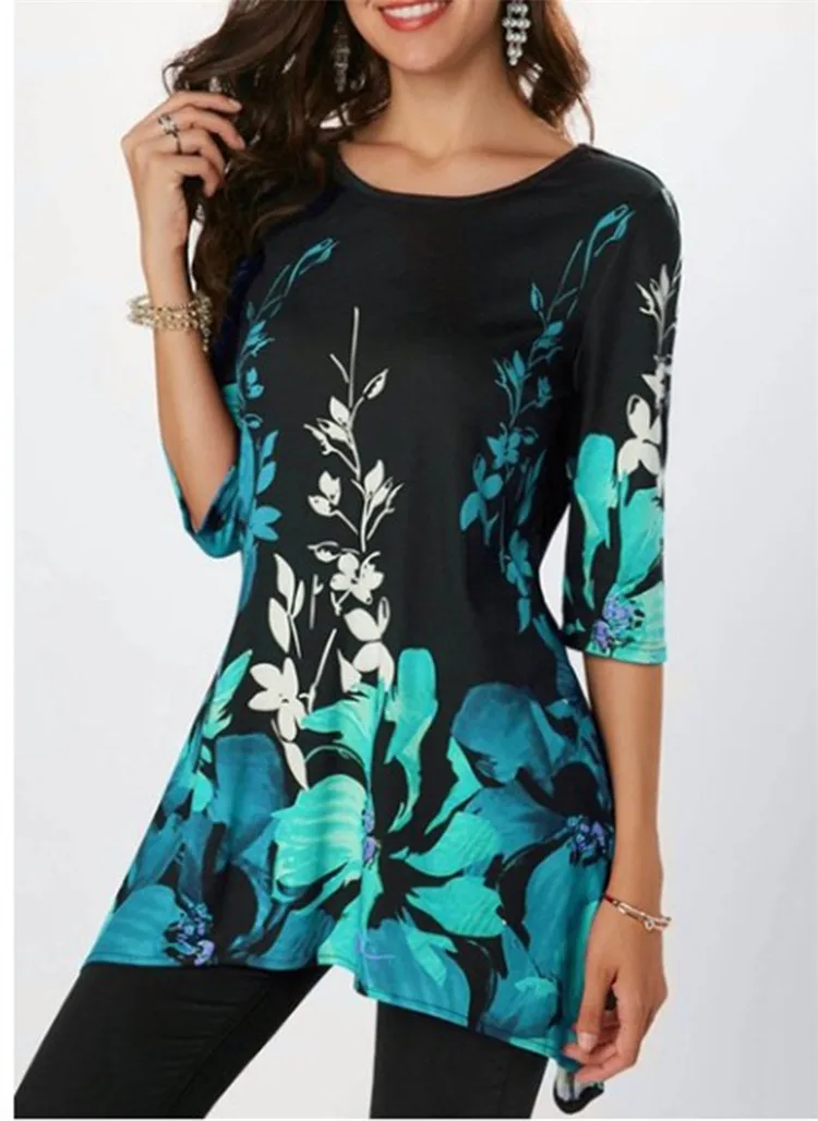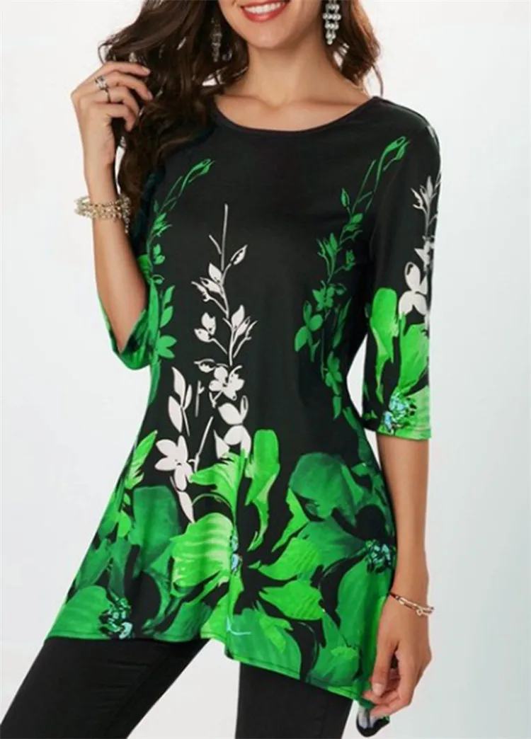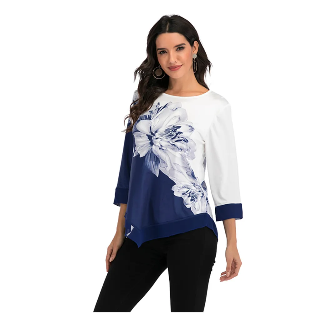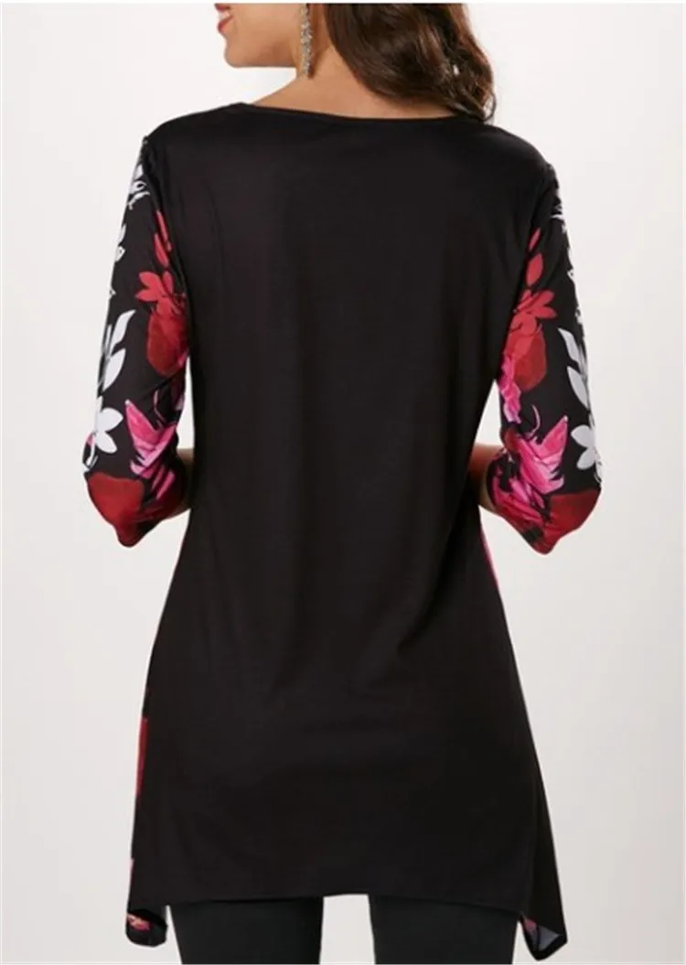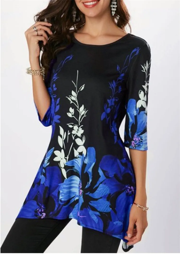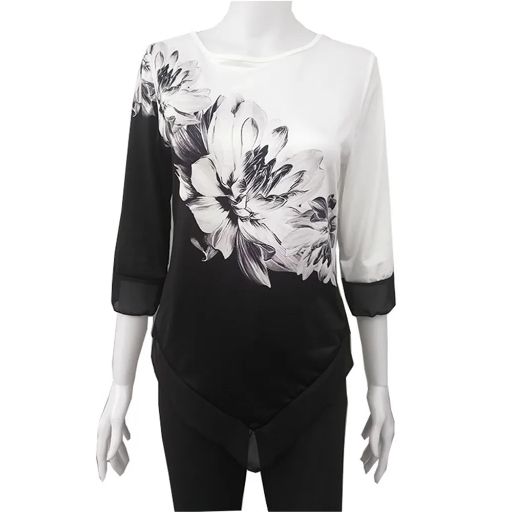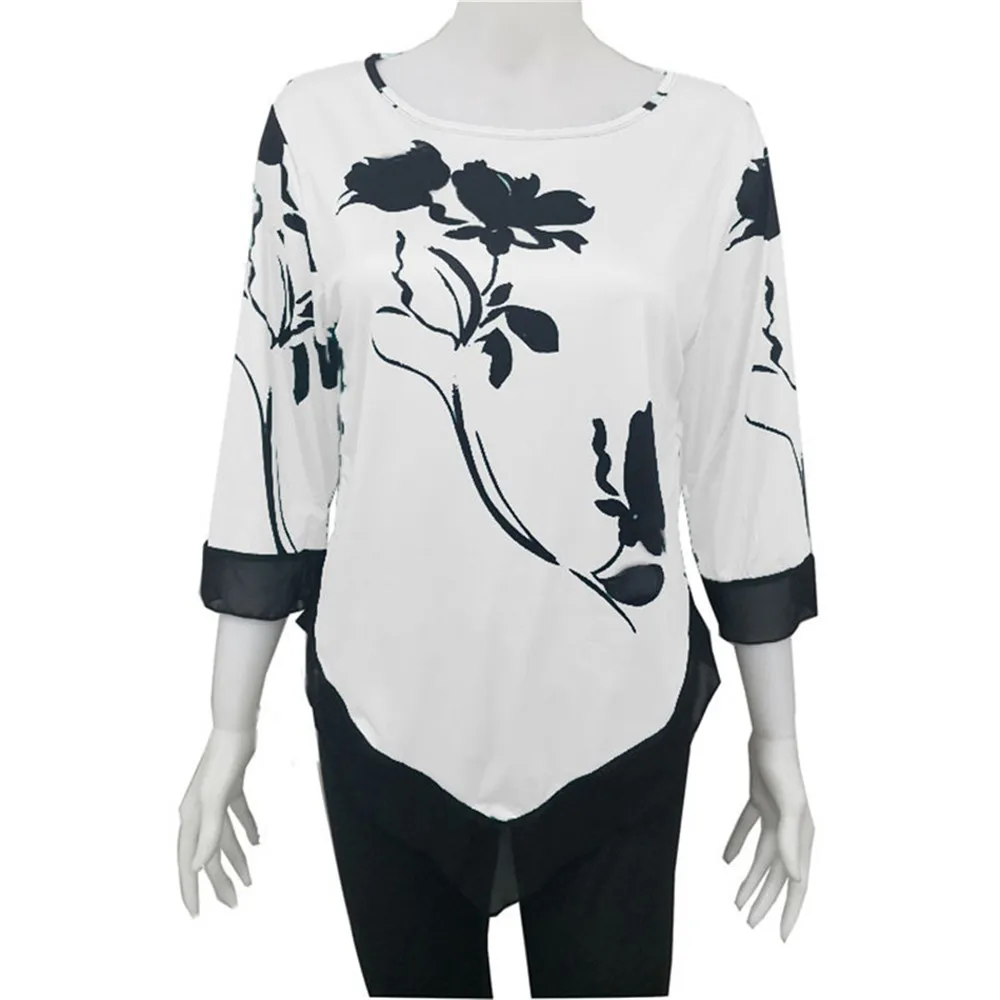 Женская футболка с круглым вырезом, длинным рукавом и цветочным принтом
