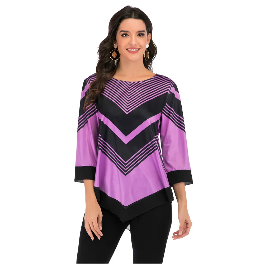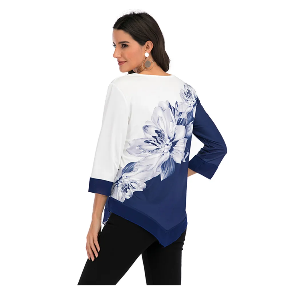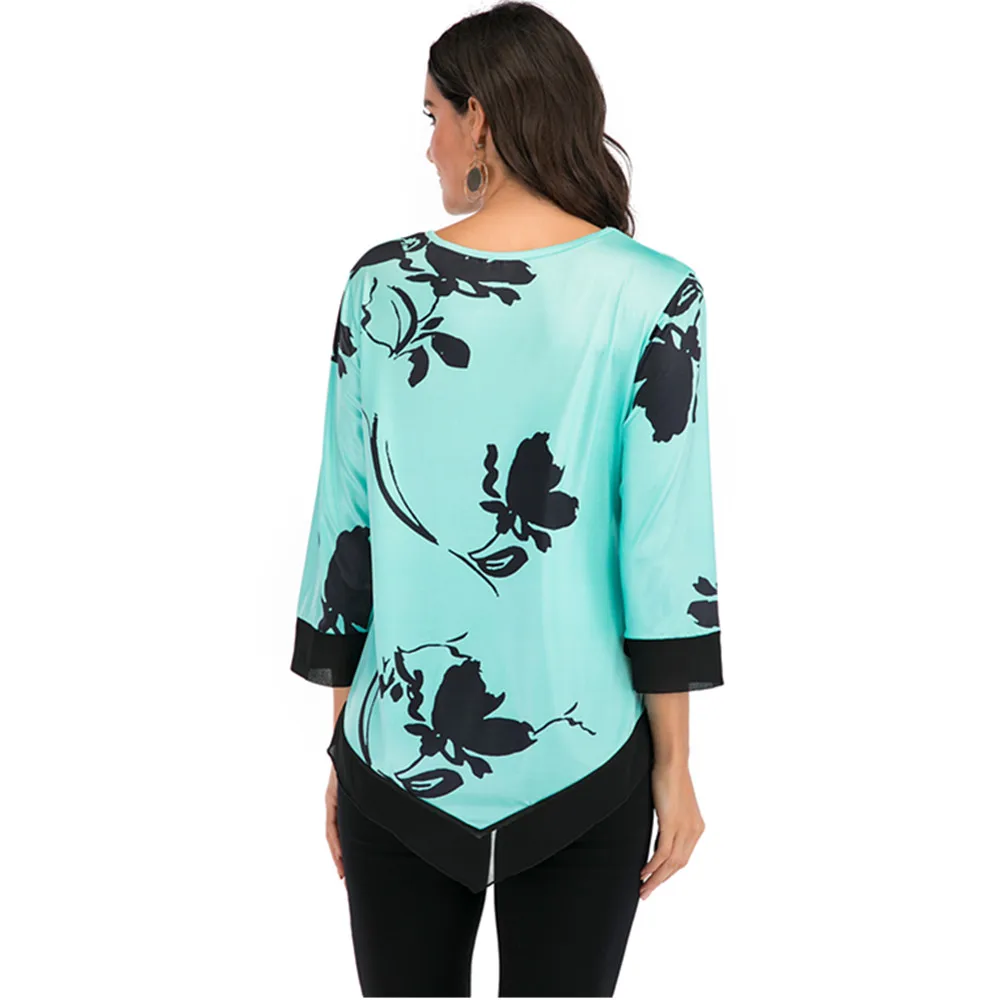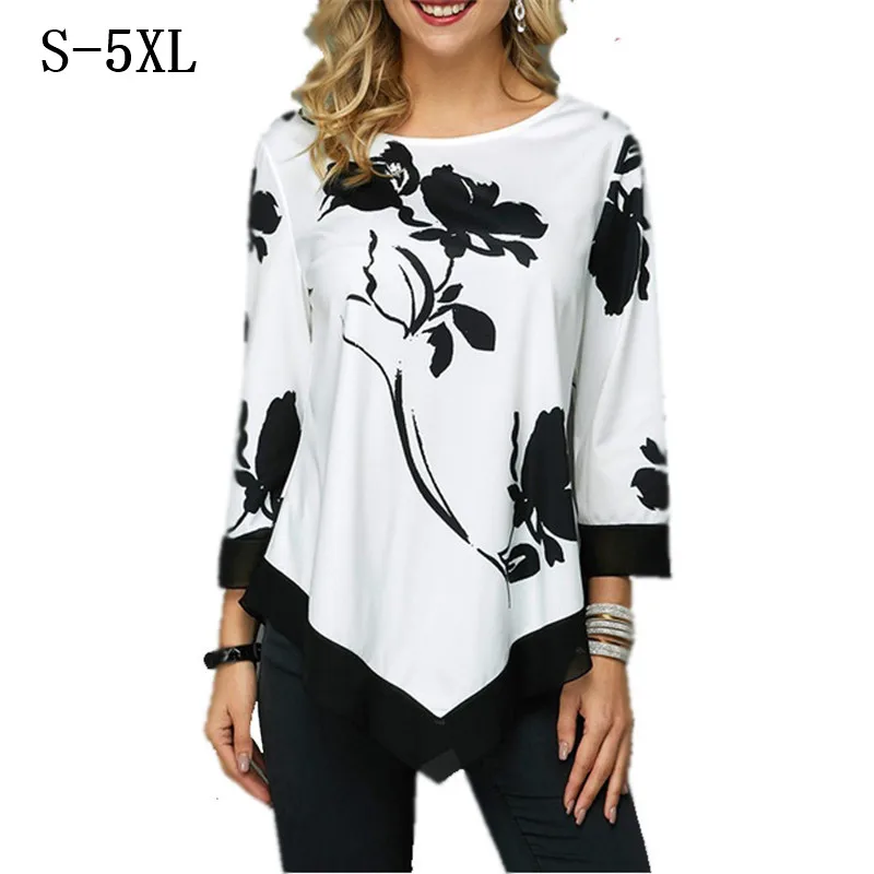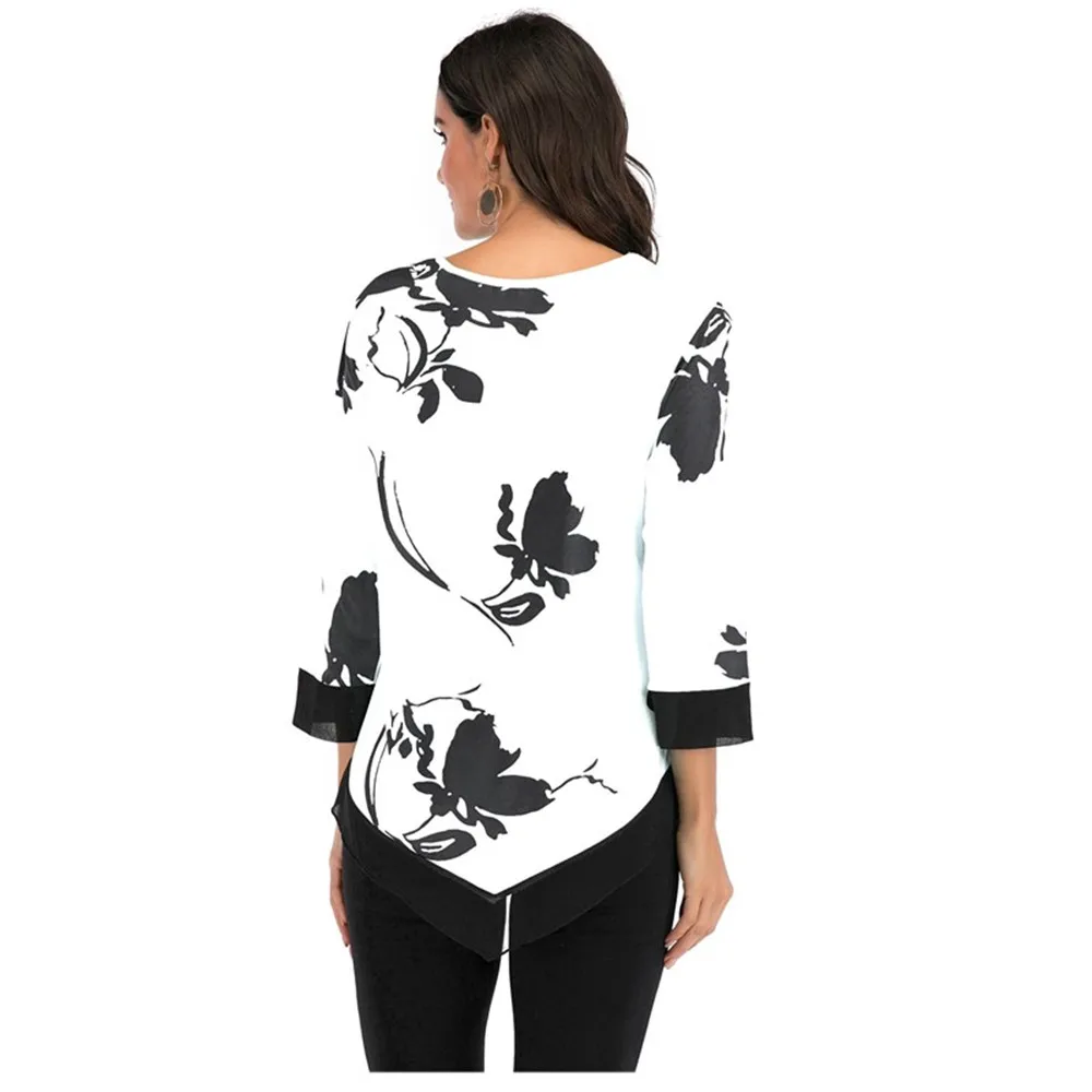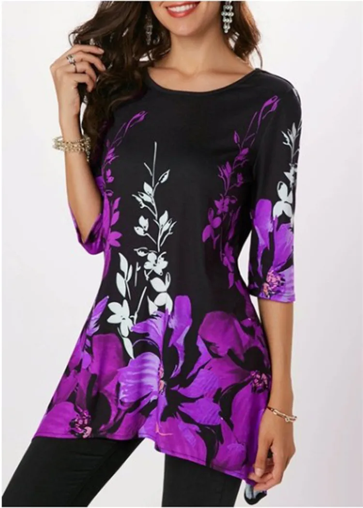 Женская футболка с круглым вырезом, длинным рукавом и цветочным принтом