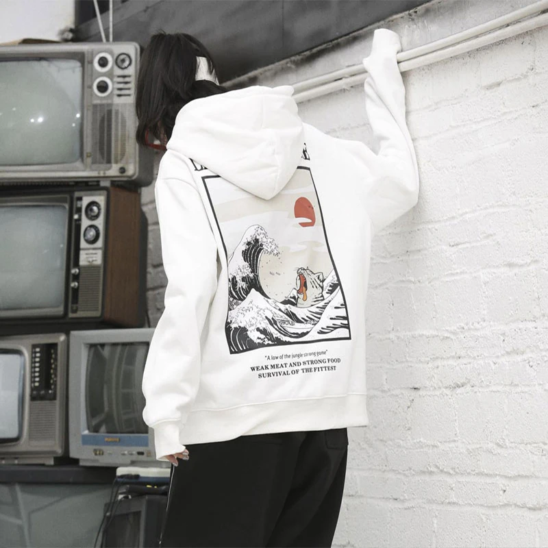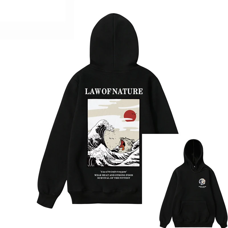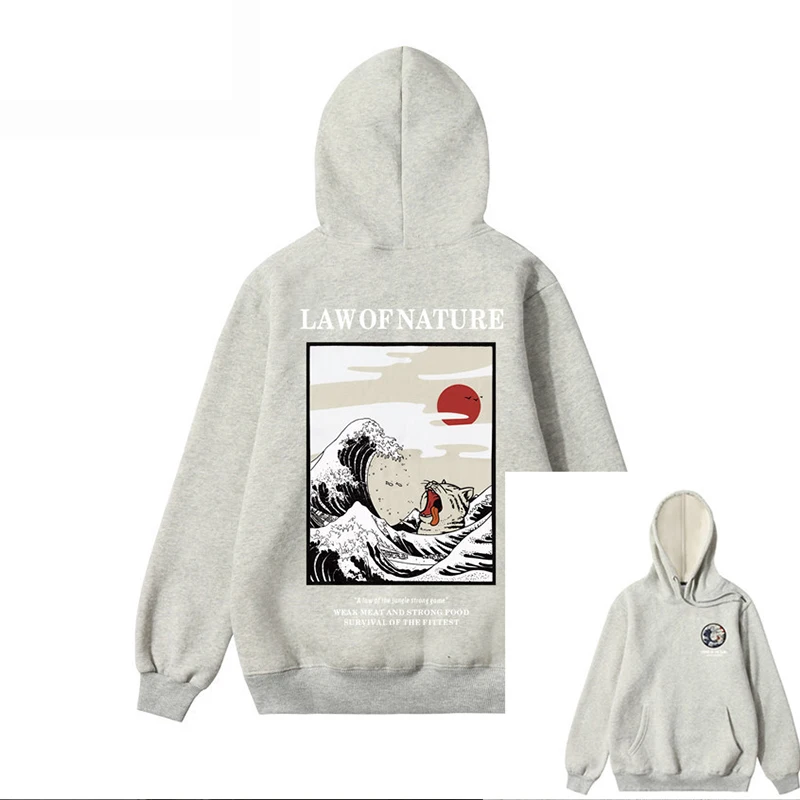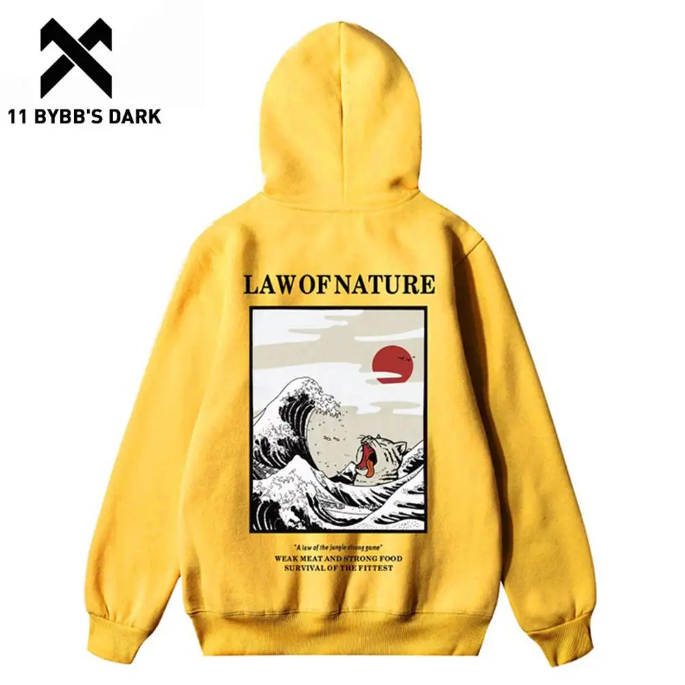 11 BYBB'S темно-японские флисовые толстовки с вышивкой забавный кот волнистый принт зимний японский стиль хип-хоп повседневные толстовки уличная одежда