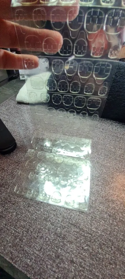 наклейки хорошие, держатся на ногте крепко , главное крупно пилкой пластину обработать и протереть после хлоргексидином( спиртом), а вот ногти по разному...возможно зависит от формы , качества пластика.., длины... одни ногти продержались 7 дней , делала по дому Все! , другие переодически отлетали..., и через три дня я их сняла ... Поэтому купила еще и клей для ногтей))на фото указательный палец, ноготь на этот стикер наклеен, остальные на клей, а розовые только на эти стикеры...