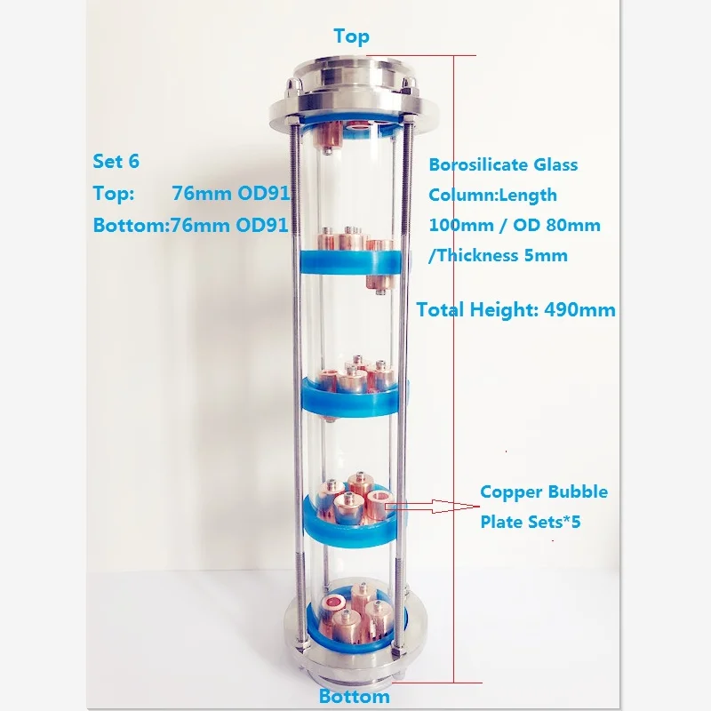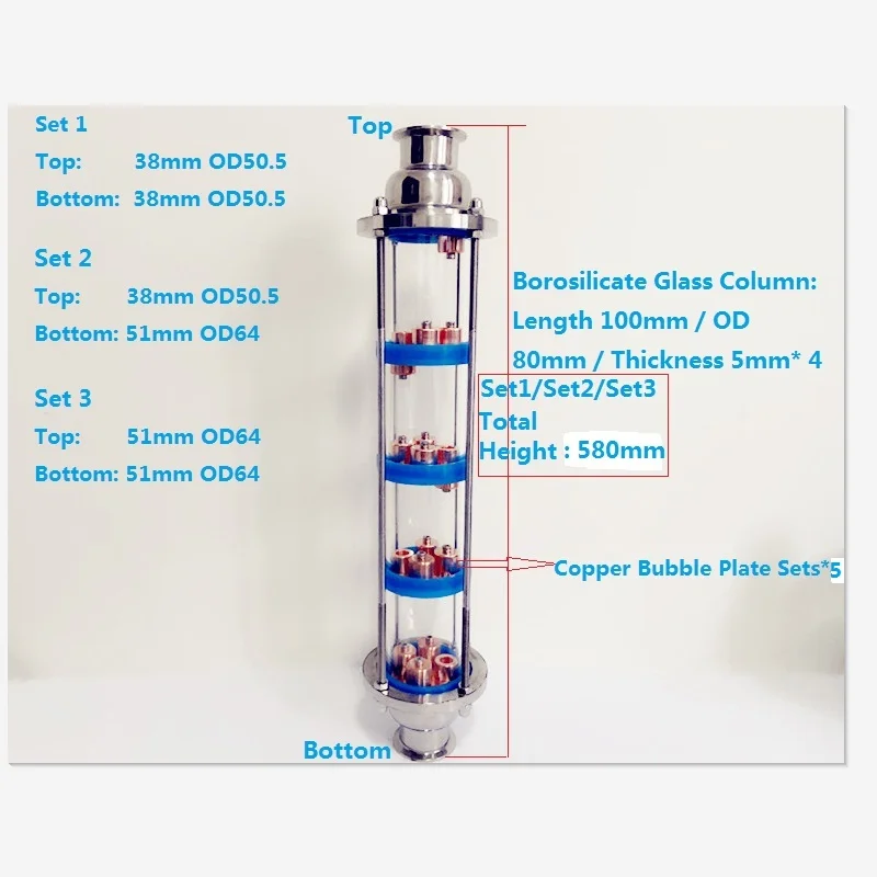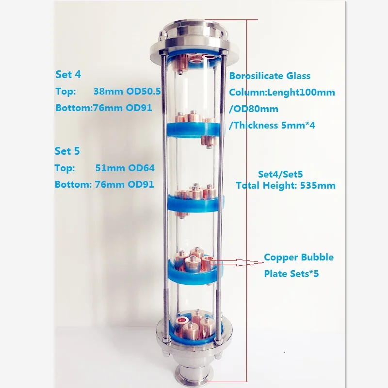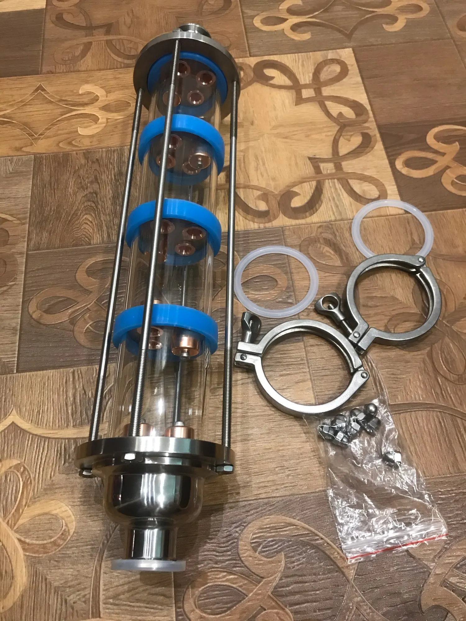 Колонка для дистилляционных линз, 3 дюйма, с наборами из 5 медных пузырчатых пластин, тройной зажим, соединение из нержавеющей стали 304