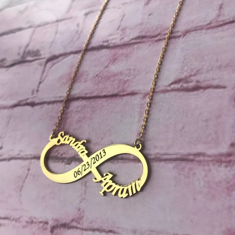Персонализированные ювелирные изделия на заказ двойное имя Дата Бес...