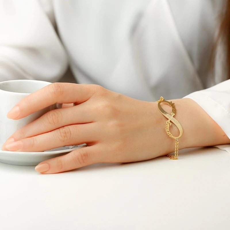 Богемные ювелирные изделия на заказ с двойным именем Бесконечность браслет персонализированные гравировка юбилей Дата Браслет Лучшие подарки для влюбленных