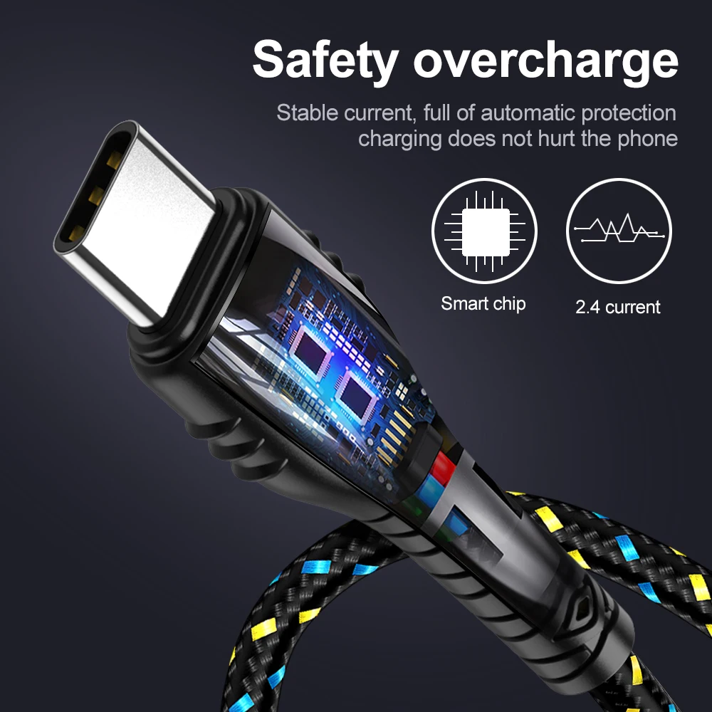 Кабель USB мобильный телефон, 3 м, 2 м, 1 м, кабель с поддержкой быстрой зарядки и передачи данных для Samsung, Huawei, Xiaomi