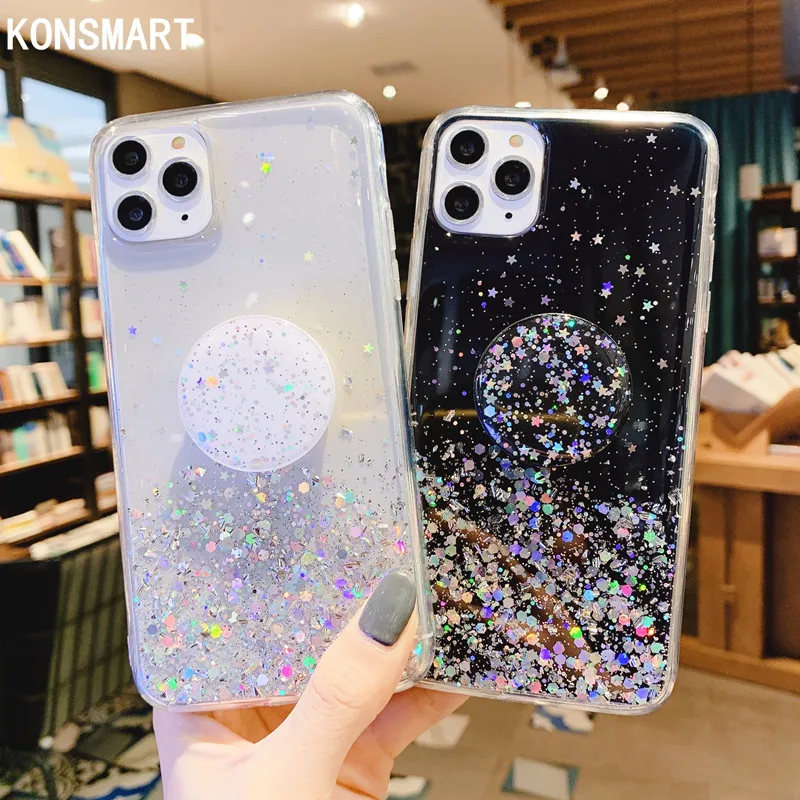 Чехол для Samsung Galaxy A50, A10, A20, A30, A40, A70, A80, A90, A20E, силиконовый прозрачный Блестящий Мягкий чехол с подставкой