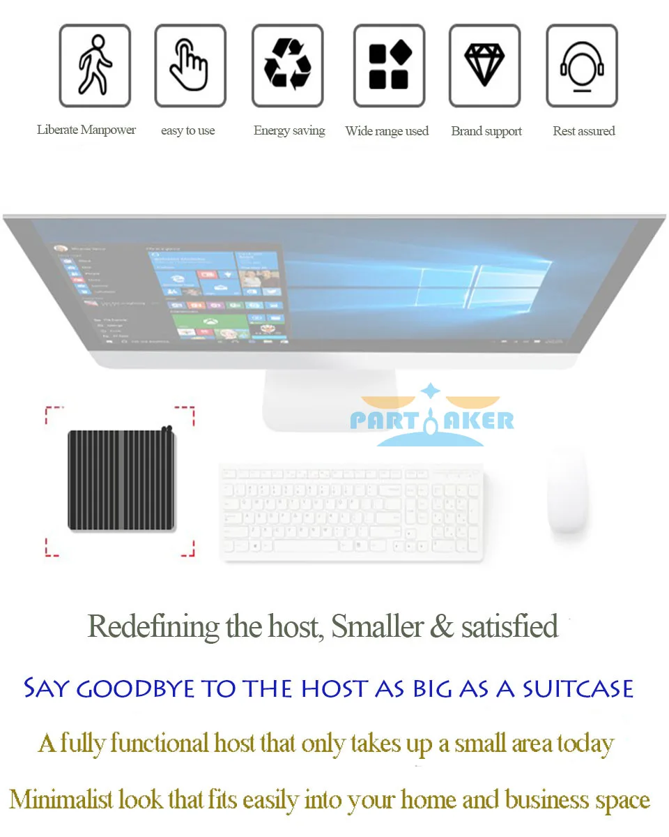 1: Малый размер: все мини-ПК Kingdel меньше бумаги формата A4, некоторые из них размером всего 3,5 дюйма, как и размер жесткого диска, используемый в традиционных толстых компьютерах. Большинство маленьких мини-ПК можно установить на заднюю сторону монитора и занимают почти нулевое место на вашем столе, делая ваш стол более четким и аккуратным.