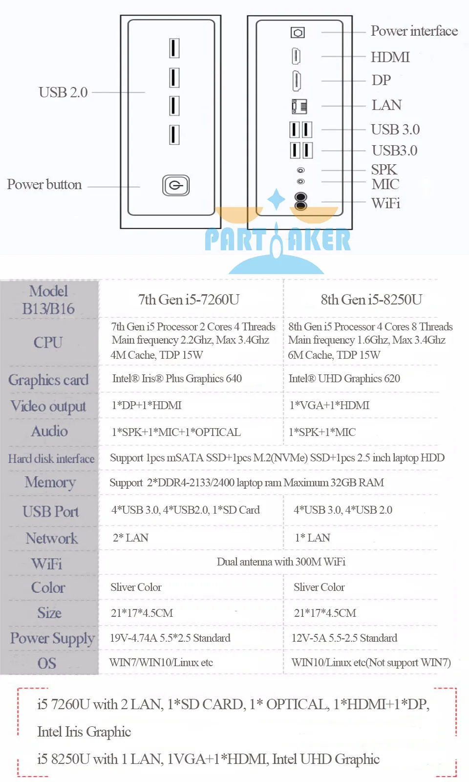 Мини-ПК parстеклоподъемник B16, Intel Core i3 8145U 2 * DDR4 mSATA M.2 NVMe, безвентиляторный мини-ПК с Windows 10, мини-ПК с HDMI VGA USB