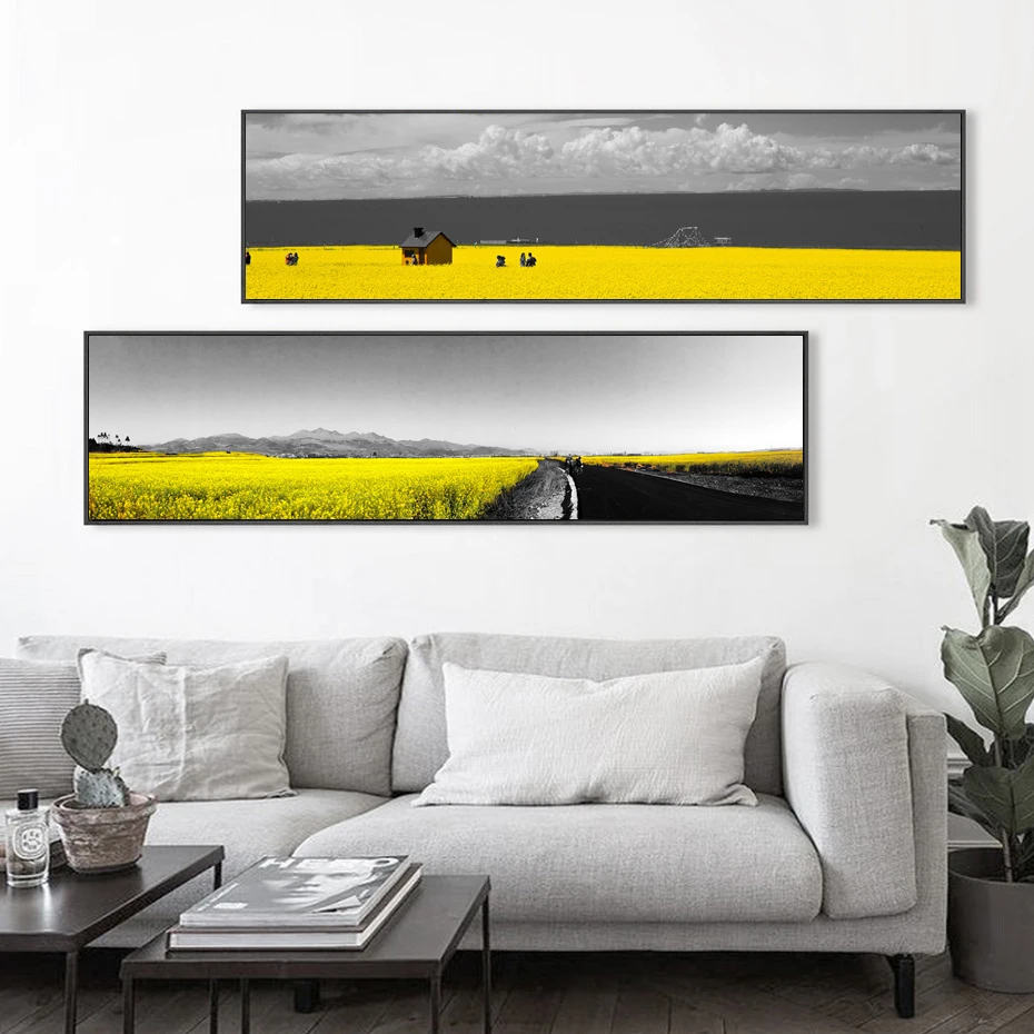 Нордическая черная желтая сцена длинные желтые постеры печати на холсте настенные художественные картины на холсте с изображением пейзажа для гостиной домашний декор
