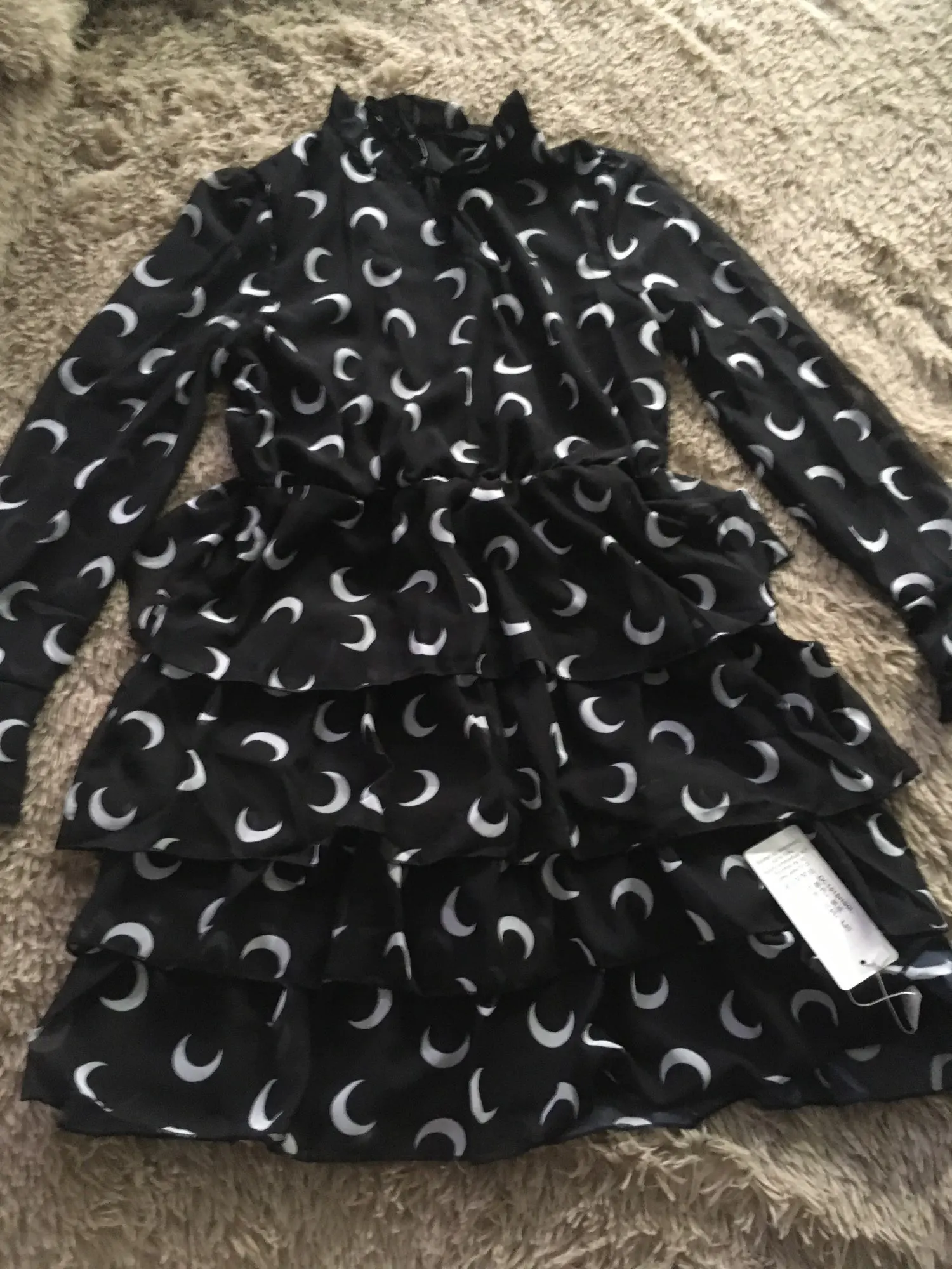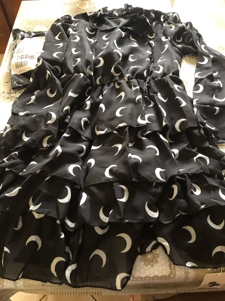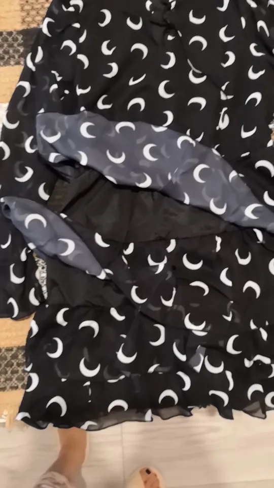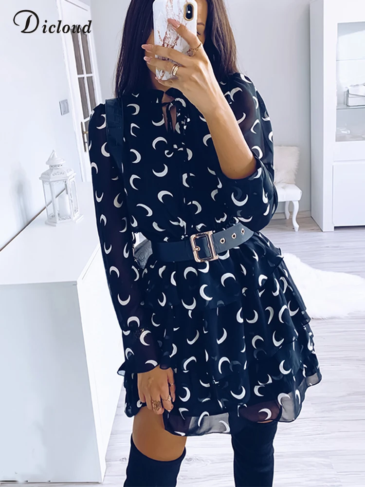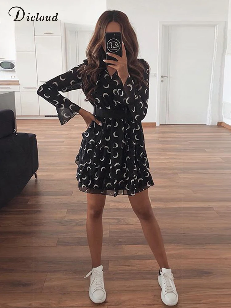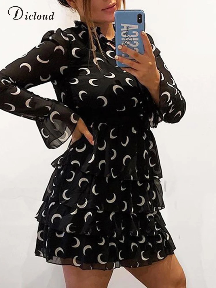 DICLOUDчерное летнее женское платье 2022 с принтом Луны и высоким воротом, Каскадное шифоновое платье с оборками, Сексуальные вечерние трапециевидные женские платья