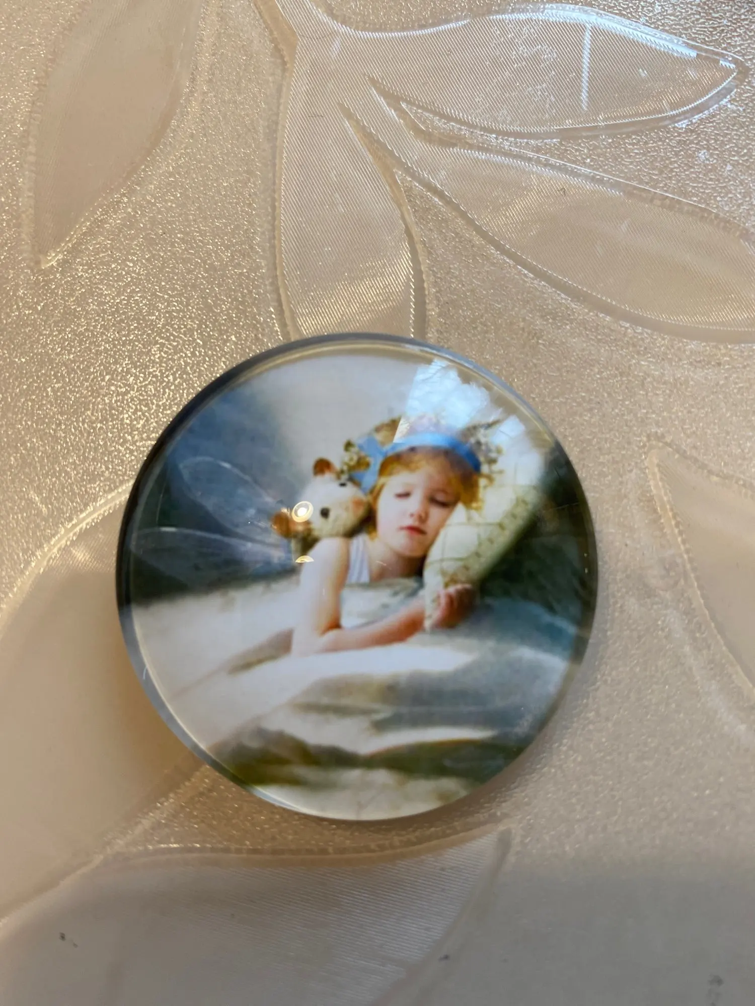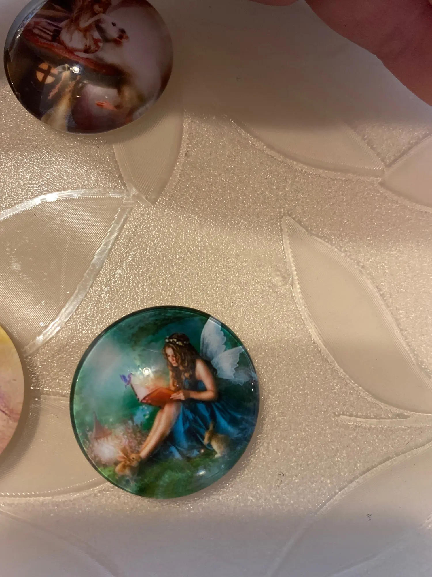 Бумага приклеена к задней части кабошона. Меньше, чем на фотографиях. Немного скучно.