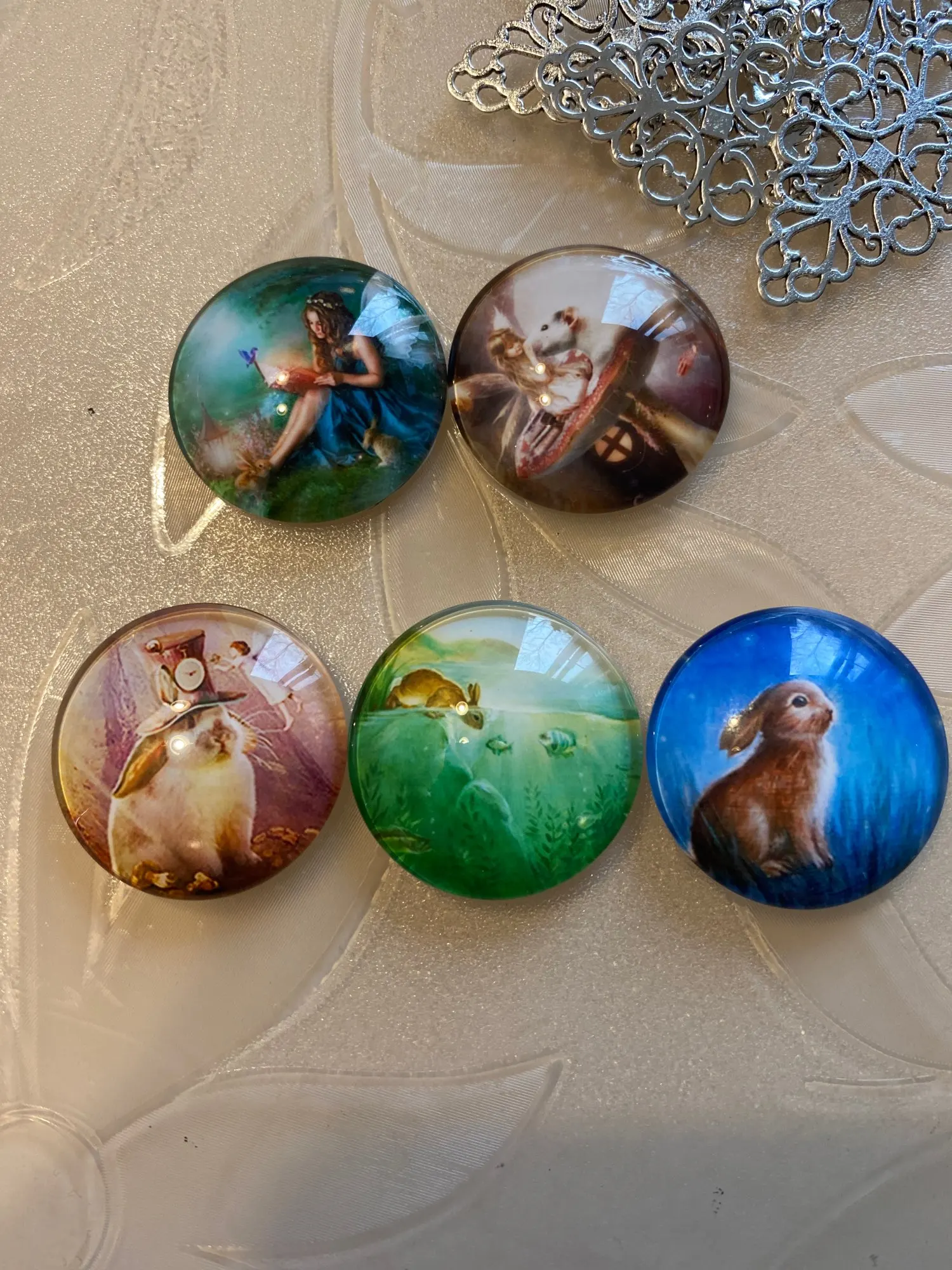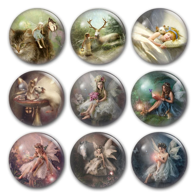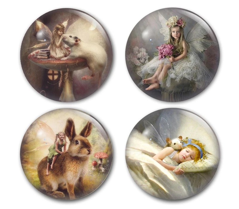 Стеклянный кабошон с изображением феи и кролика, круглый кабошон для фото в стиле секретного сада, милая мышь, лошадь, лиса, демонстрационная фурнитура с плоским основанием