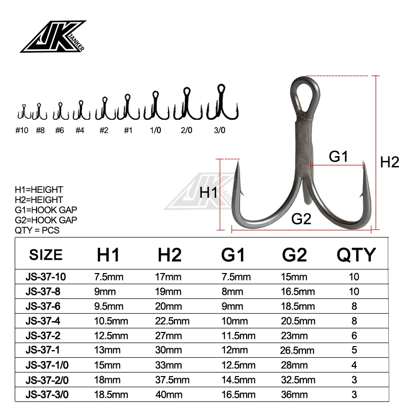 Тройной рыболовный тройной крючок JK JS-37, 3x прочные тройные Крючки, рыболовный крючок с защитой от ржавчины, тройной крючок #10 #1,10 20 30 для морского плавания