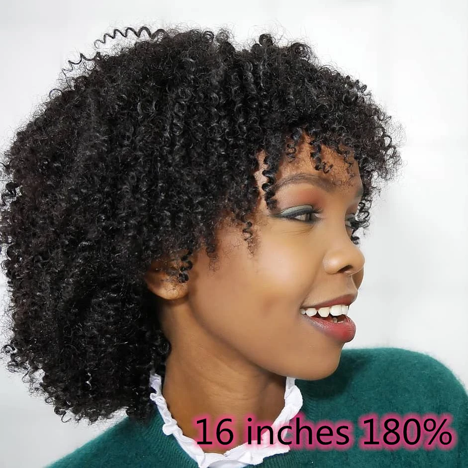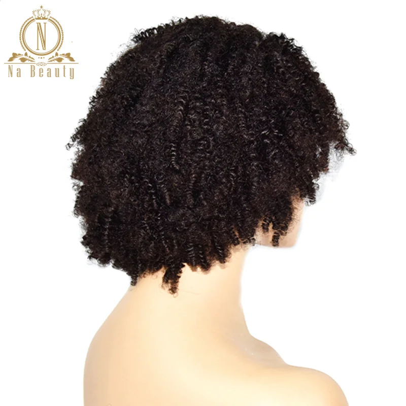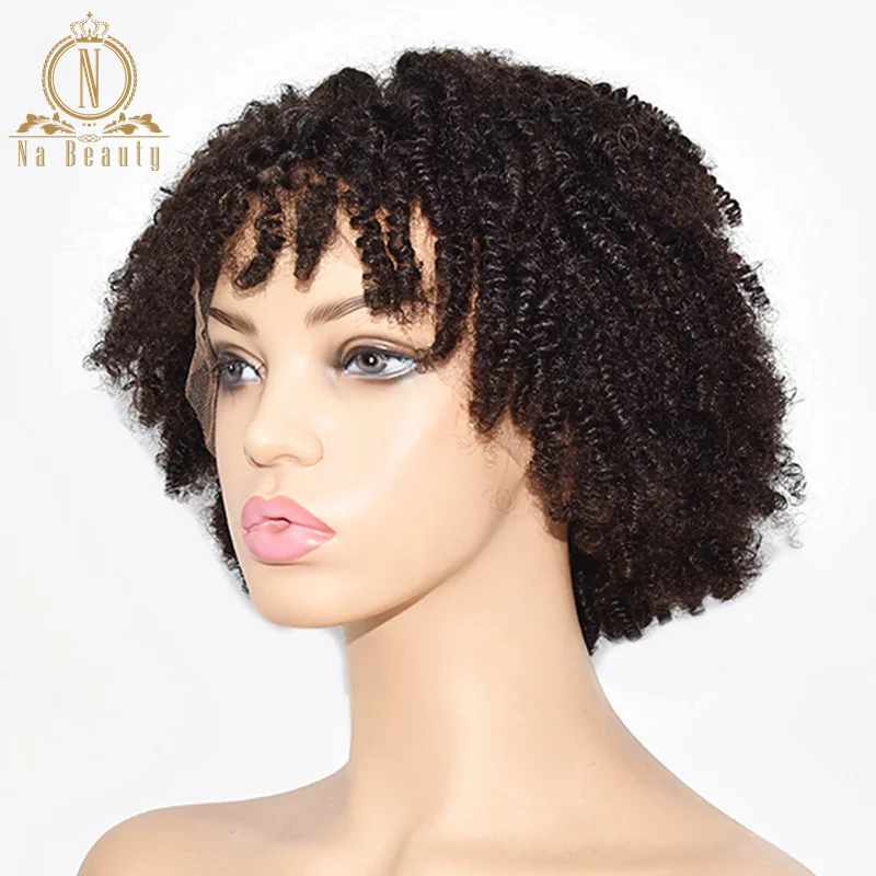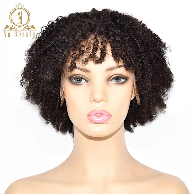 Афро кудрявый вьющийся парик, парики из человеческих волос на сетке с челкой, предварительно выщипанный парик 13x4 на сетке спереди для женщин, черные волосы Remy Na Beauty