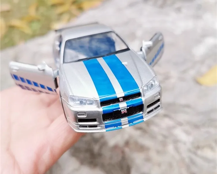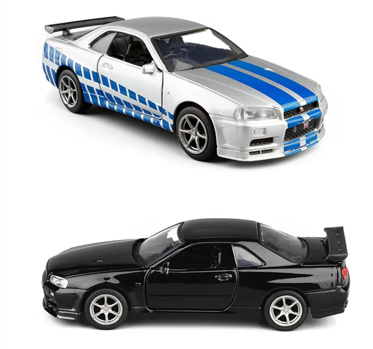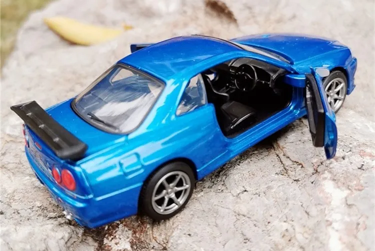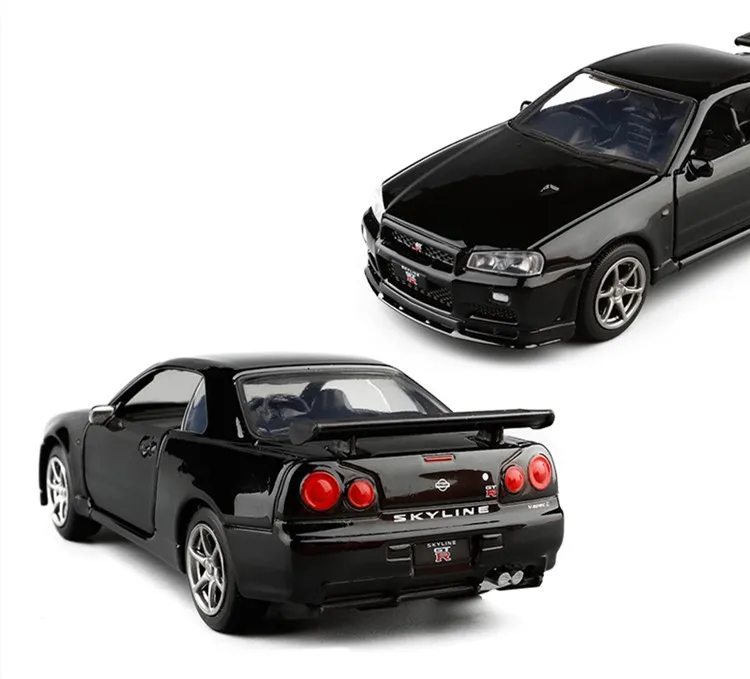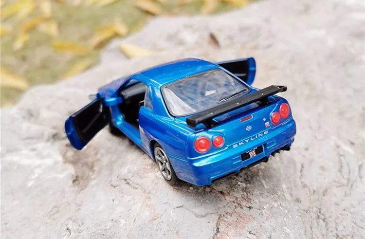 Модель спортивного автомобиля Nissan GT-R R34, высокое качество, модель из сплава, имитация металла, игрушки, подарки для детей, бесплатная доставка, 1:36