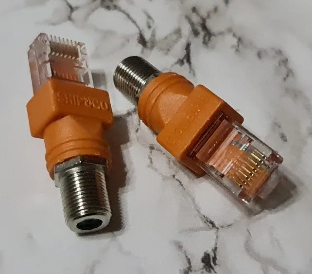 Лидер продаж! Один или 2 шт. разъемов F-типа RF Female To RJ45 Male коаксиальный цилиндрический переходник коаксиальный адаптер, разъемы RJ45 To RF
