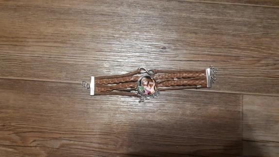 Браслет соответствует описанию. Из упаковки пока не доставали, ибо на подарок. Кабошон хорошо исполнен, рисунок красивый, яркий; ремешки, из которых состоит браслет, как видите, не расклеены, запаяны. Посмотрим, как поведет себя браслет в нОске, быстро ли распушатся косички. Застёжка, надеюсь не подведёт, но по виду все должно функционировать нормально. Шел с 07.12.2020 по 15.02.2021, трек не отслеживался, забрали на почте. Обошёлся в 105,29 руб. Спасибо продавцу.
