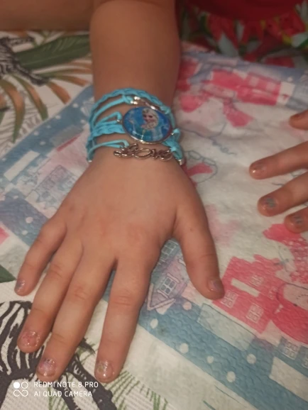 заказала 2 браслета с одним все ок,у второго не закреплён один ремешок ,и картинка вылетает( в общем использовать его нельзя( открыла спор...браслет на объем руки от 7-8 лет