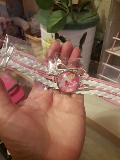 очень милый браслетик,в точности как на картинке,для девочек это восторг. Рекомендую,радуйте деток,спасибо продавцу за быструю отправку товара. До Томской области всего за 20 дней пришла посылка.