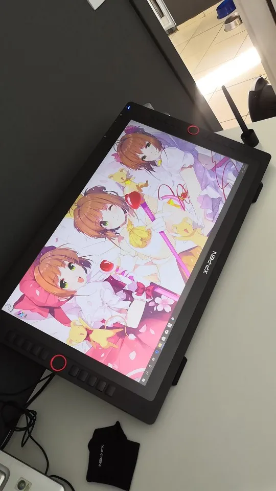 Я немного не ожидала, что планшет настолько огромный, придётся думать, где его хранить. Оказалось, что для его подключения к компьютеру нужен лишний HDMI или VGA порт, которого у меня не было. Попробую взять адаптер на HDMI - USB (это совет с офф сайта xp-pen). Пока рисую на ноуте - всё отлично. Кнопки удобны, особенно нравятся вон те красные круглые штуковины, позволяющие скроллить и уменьшать/увеличивать размер рабочей области, а также кисти (есть отдельные кнопки, переключающие функции красной круглой штуковины (да, их две, да, они независимы друг от друга)). Продавец очень хороший в общении, старается понять ситуацию и помочь, если это в его силах. P.S. Фото смазаны. На деле всё чётко.