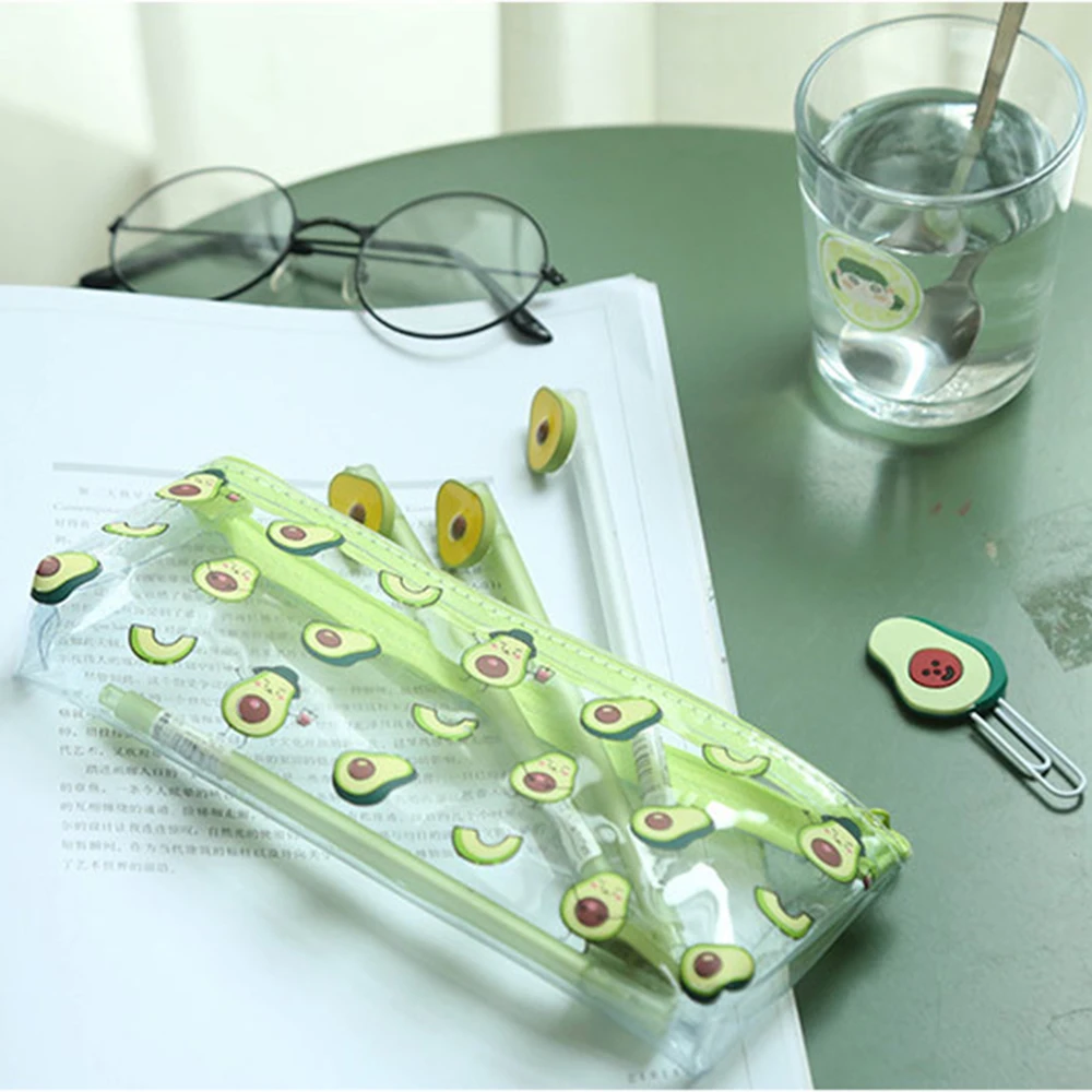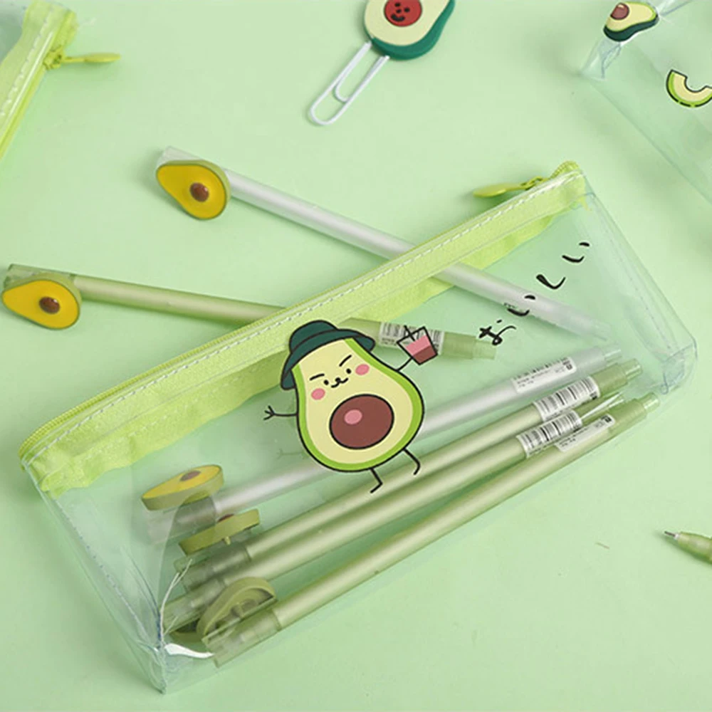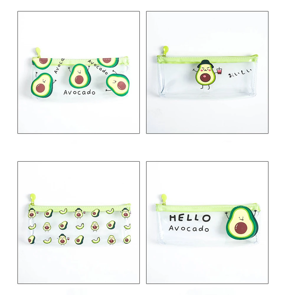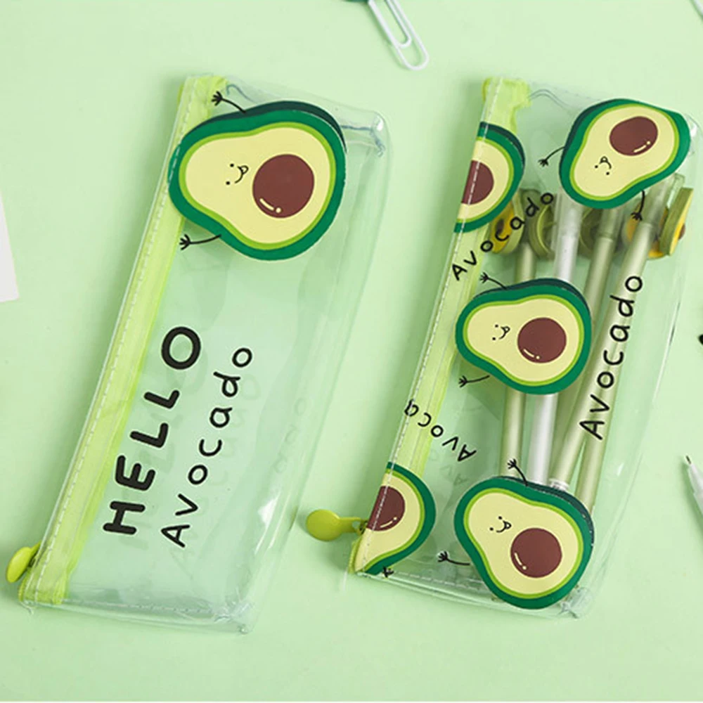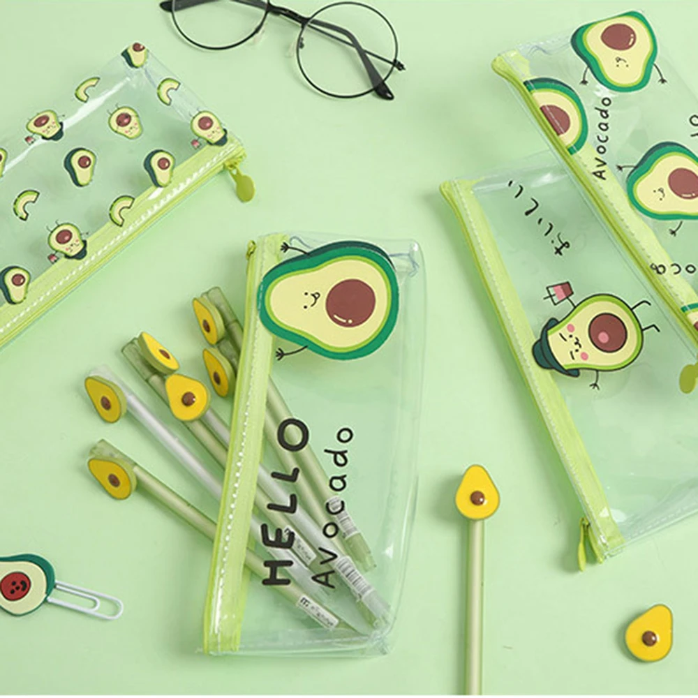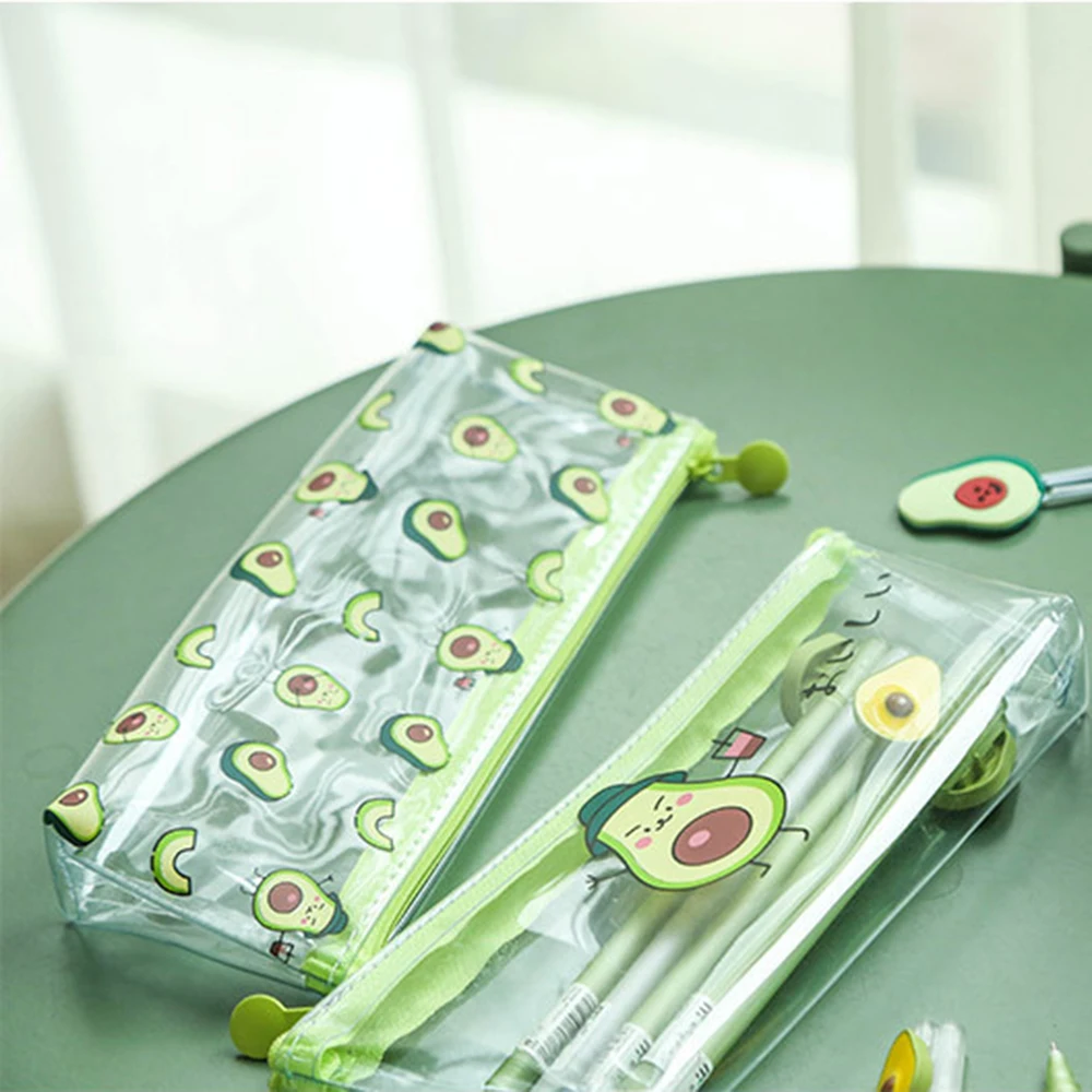 Пенал школьный прозрачный с рисунком авокадо, чехол для карандашей и сумка, школьные принадлежности, 1 шт.