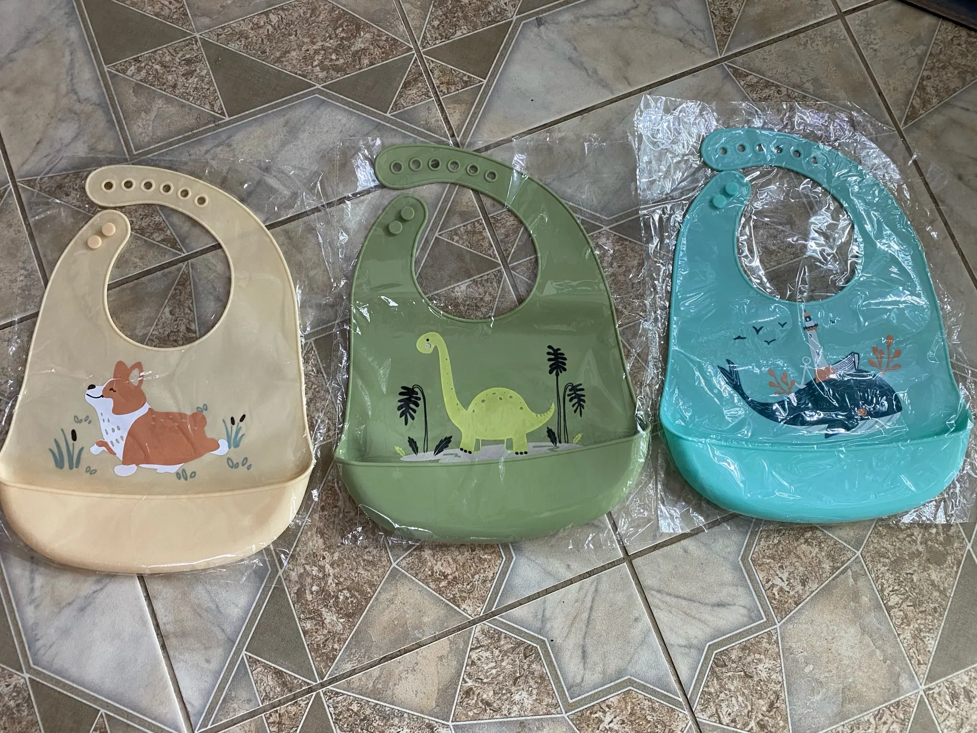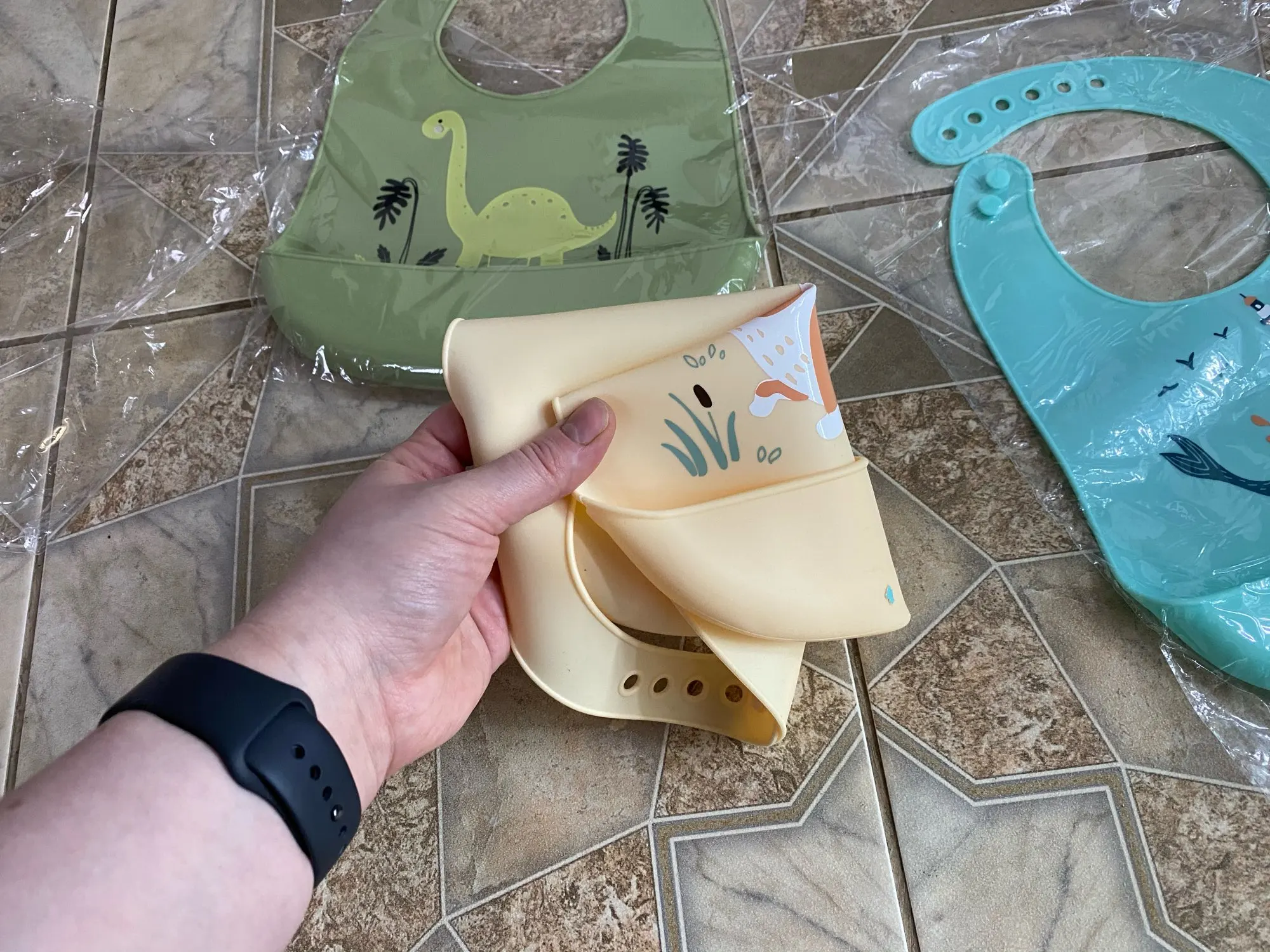 Отличные слюнявчики, удобные, мягкие, служат ребёнку ещё и как грызунок :) Товар приехал где-то за 3 недели