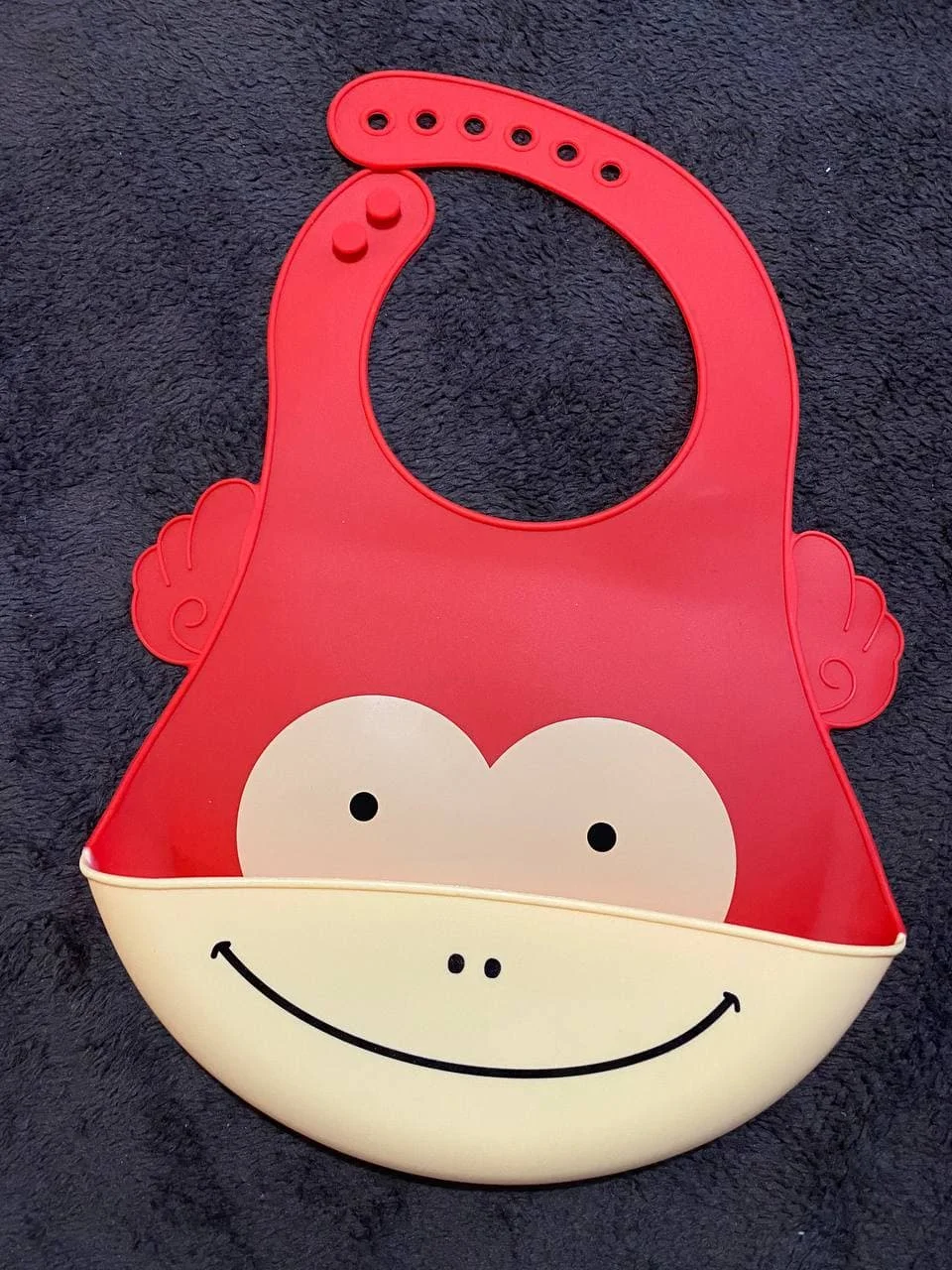 супер мягкий слюнявчик. удобно что есть большое количество дырочек для одевания именно под размер. вещь эту придумал гений. разлился суп ...попал в карман...просто отправляем его обратно в тарелку и вуаля