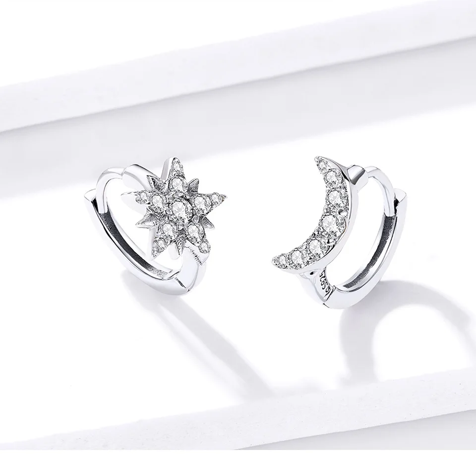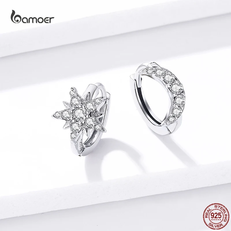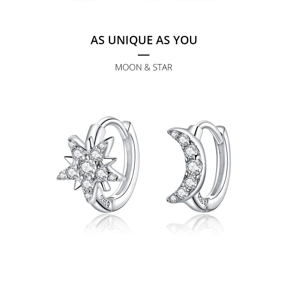 Женские серьги-кольца Bamoer GAE289, 925 пробы, серебристые, изысканные, с Луной и звездой, подарок на фестиваль, ювелирные изделия, гипоаллергенные серьги