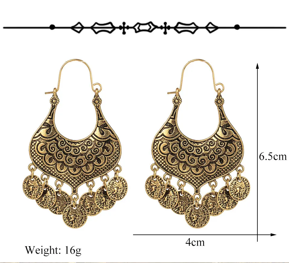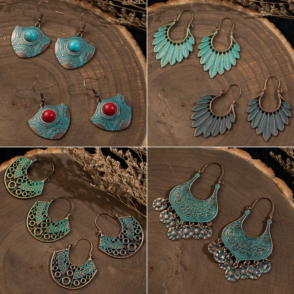 Новинка 2019, Модные Этнические Ретро Винтажные большие висячие серьги разных типов для женщин, женские висячие украшения и аксессуары