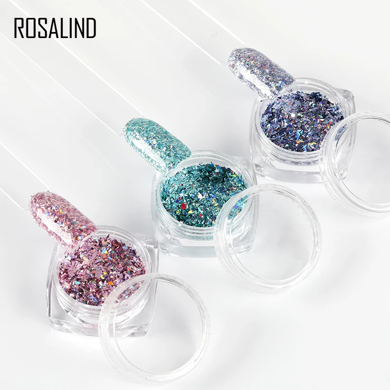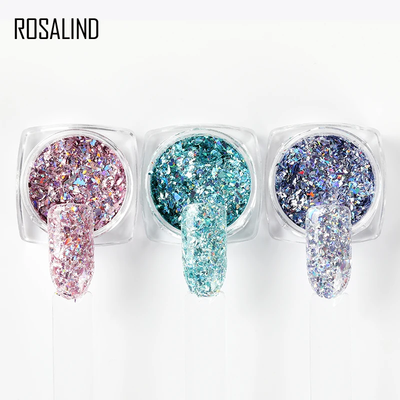 ROSALIND Блестящий художественный Пигментный Порошок для ногтей Гель-лак зеркальные маникюрные Блестки для ногтей УФ-хромовые голографические украшения для ногтей