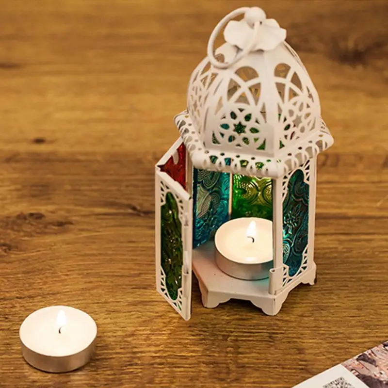 Винтажные марокканские ветрозащитные подсвечники, висящий свечной фонарь, железный стеклянный обетный подсвечник, Свадебный декор, для дома, вечеринки, 7*17 см