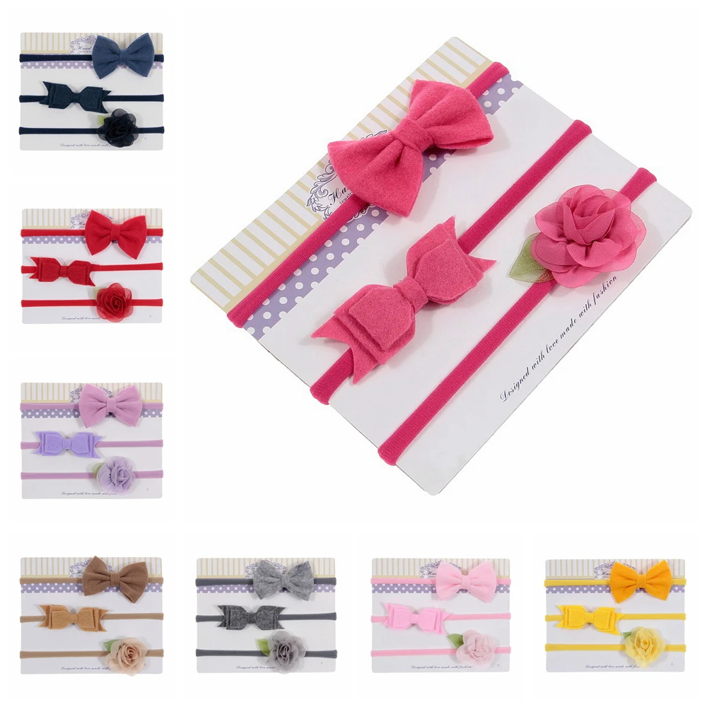 Новинка 3 шт.лот войлочный бант лист цветок эластичная нейлоновая повязка на голову Детская фотография реквизит для маленьких девочек набор головных уборов милые подарки на день рождения