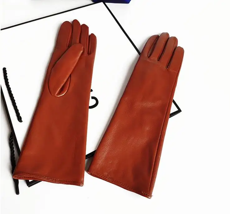 Женские длинные перчатки из натуральной овечьей кожи, женские перчатки для вождения с сенсорным экраном 33 см R2301