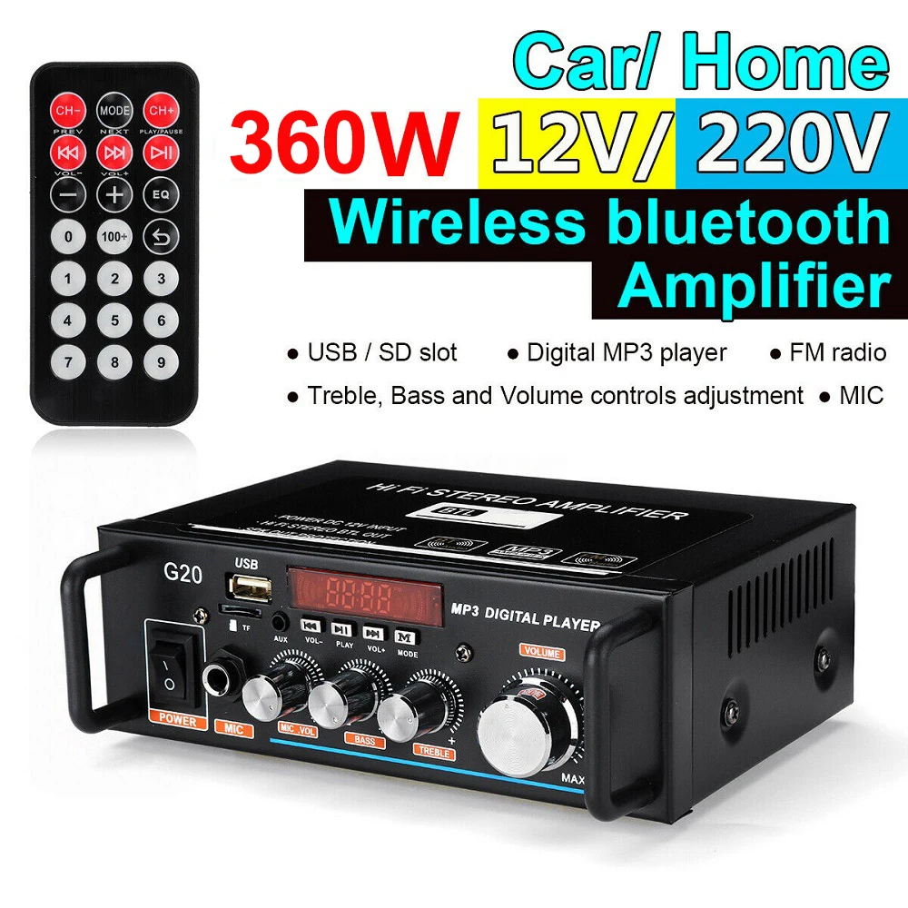Беспроводной цифровой мини-усилитель звука, 12 В, 220 В, с Bluetooth, Hi-Fi сабвуфер, усилитель для домашнего кинотеатра, аудио, автомобильный радиоприемник