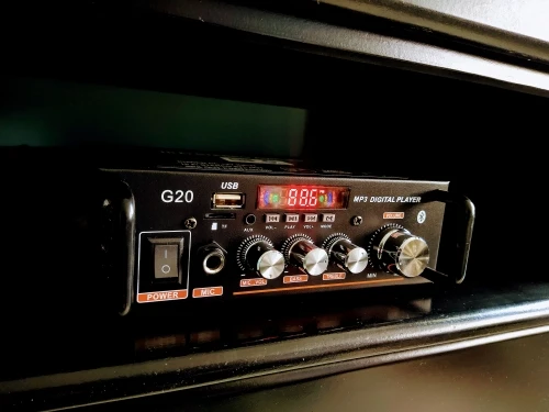 1 х домашний/автомобильный мини-усилитель1 X пульт дистанционного управления (аккумулятор не входит в комплект)